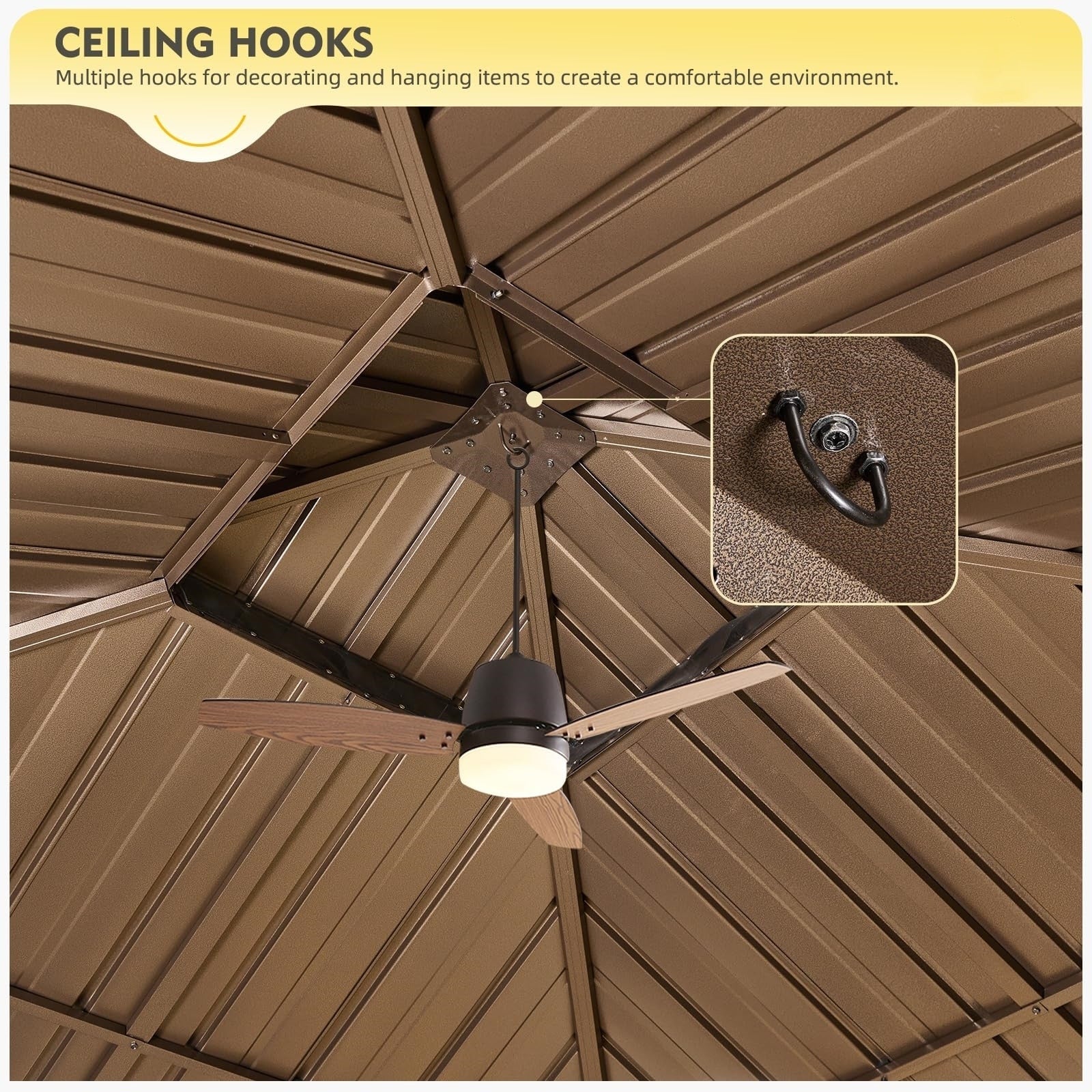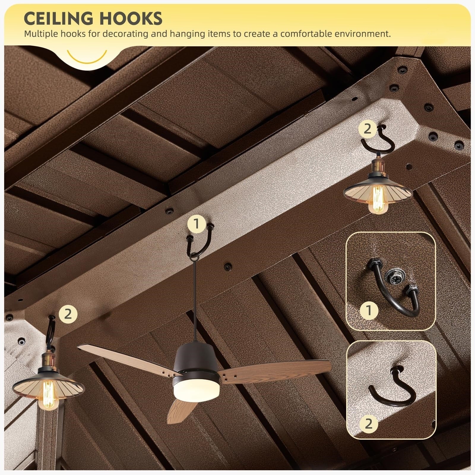Son design à crochets polyvalent répond à tous vos besoins. Il vous permet d'accrocher des ventilateurs lors des chaudes journées d'été, ou d'ajouter de belles lumières et décorations. Ce kiosque peut servir d'aire de jeux pour les enfants, de lieu de rendez-vous pour les couples ou de lieu de rassemblement familial idéal. Il vous réservera certainement des surprises.