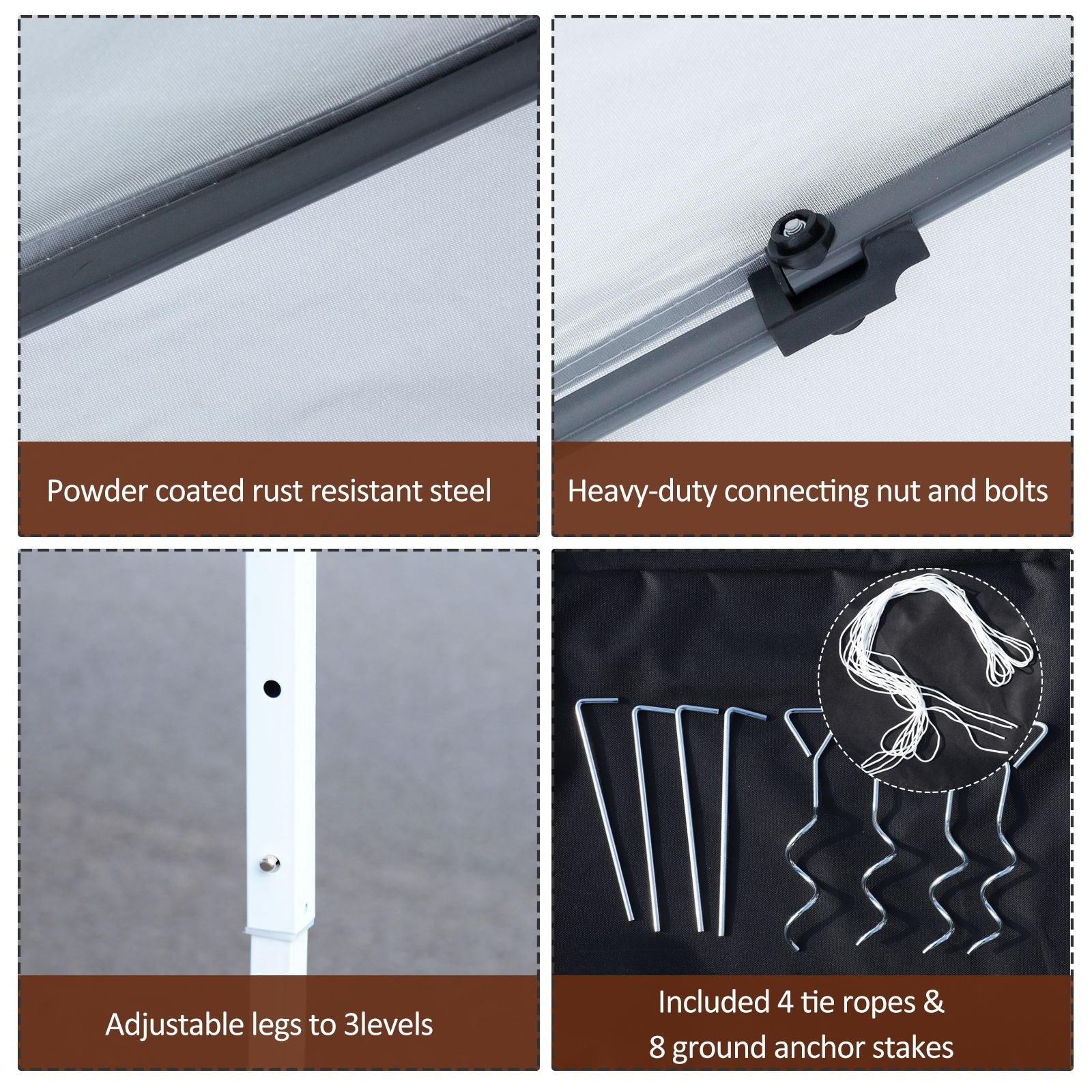 Prenez votre boisson préférée et profitez d'un moment de détente à l'ombre en quelques minutes grâce à la tonnelle Outsunny de 3 m x 3 m à montage facile. Idéale pour les réunions de famille, les pique-niques, le camping ou les fêtes d'avant-match, elle offre un espace de détente à l'abri des rayons UV nocifs du soleil. Utilisez la tonnelle instantanée pour vous protéger du soleil ou installez les parois amovibles en filet pour une protection solaire supplémentaire. N'ayez plus peur de sortir ! Installez une tonnelle Outsunny.