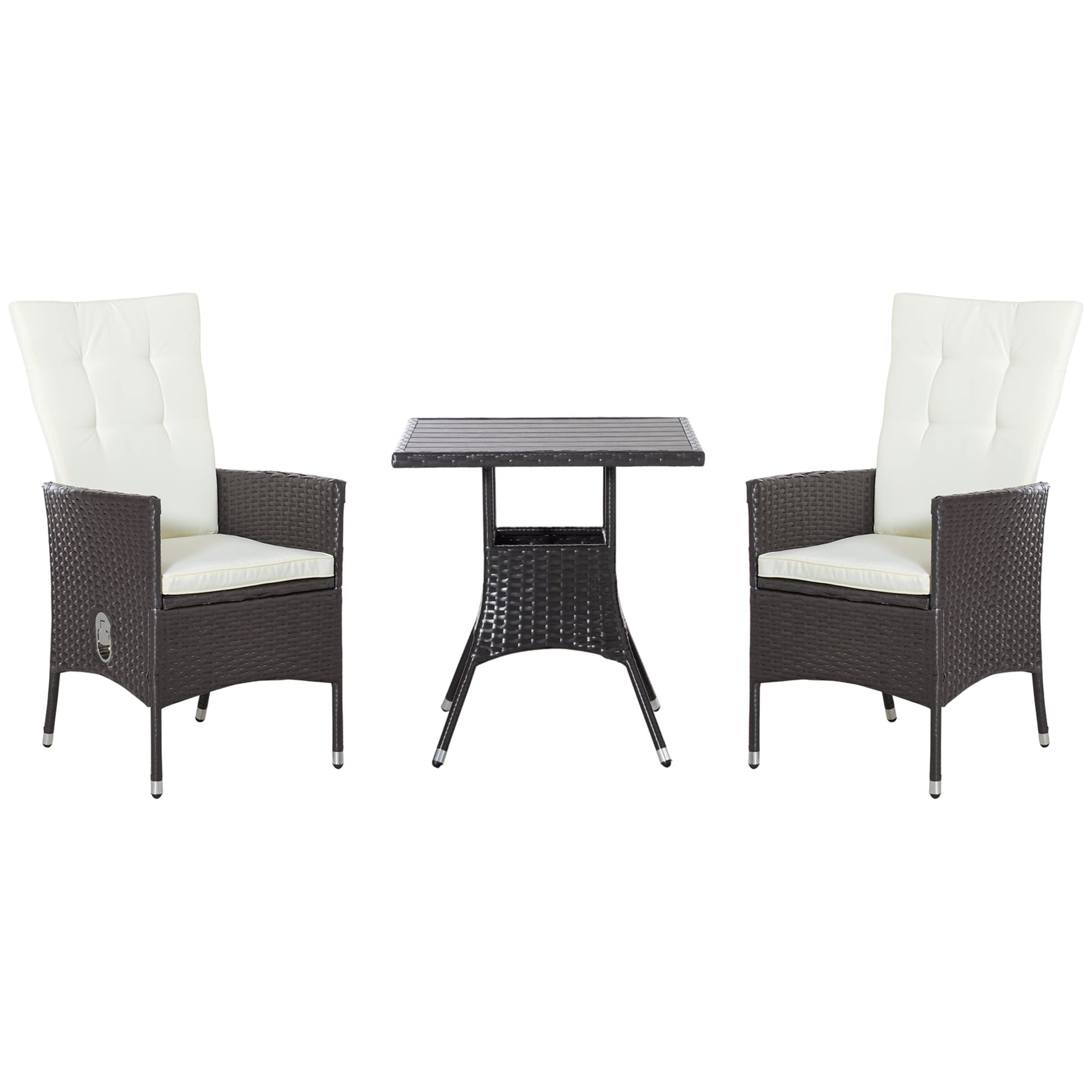 Apportez le confort de l'intérieur à l'extérieur avec Outsunny. Notre mobilier de jardin trois pièces comprend deux fauteuils inclinables en osier et une table basse d'extérieur. Installez-vous confortablement sur une assise au rembourrage épais et un dossier haut inclinable. La table basse arbore un élégant motif boisé disposé en lattes pour faciliter l'évacuation de l'eau après la pluie. Notre rotin synthétique présente le même style que l'osier classique, tissé à la main, avec une meilleure résistance à l'eau et aux intempéries. Sortez, installez-vous confortablement, optez pour Outsunny.