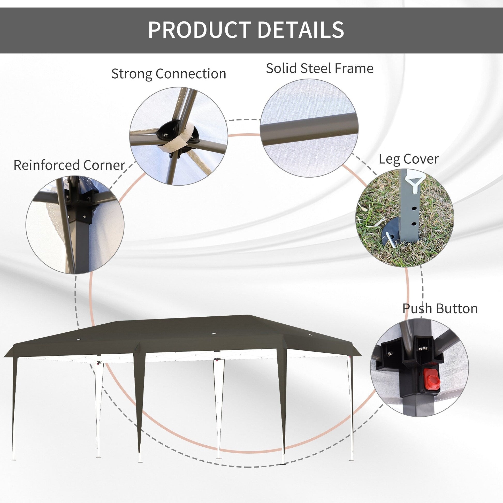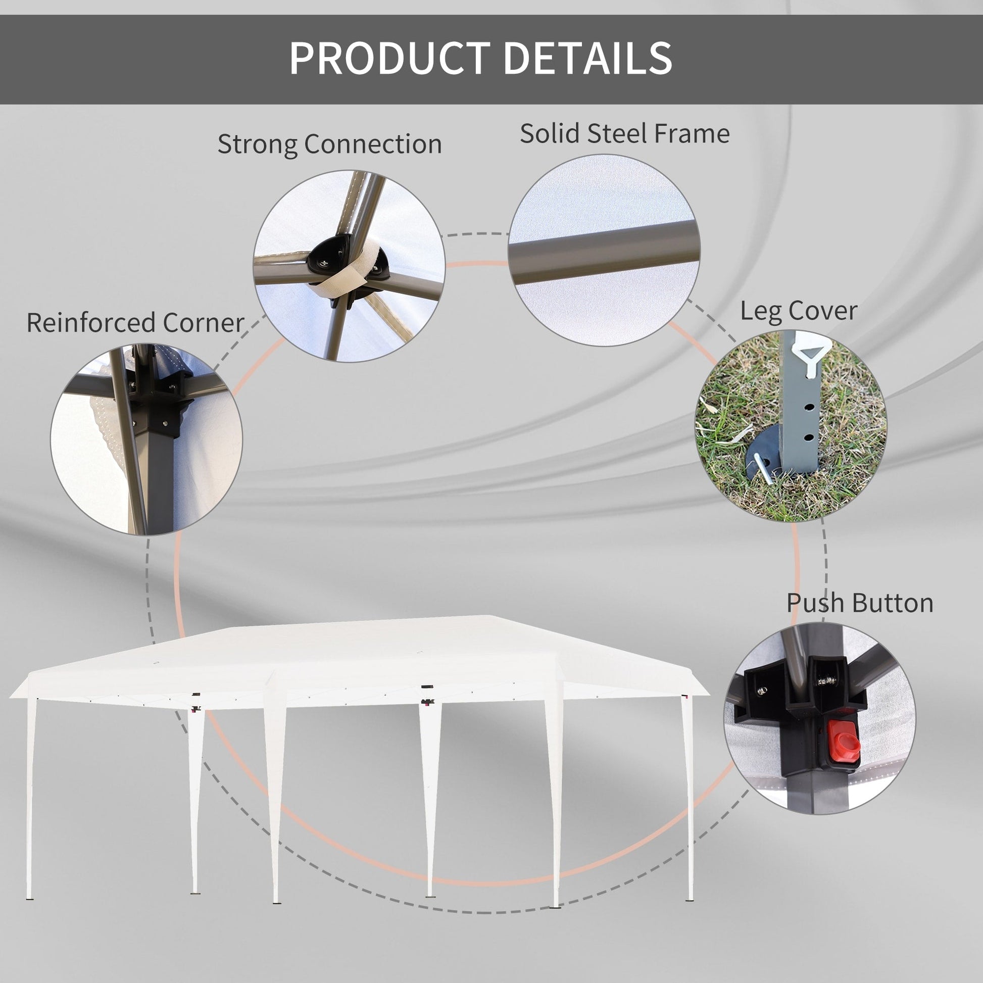 Outsunny propose une tente pliante extra-large pour les fêtes, vous permettant d'installer un espace ombragé et de vous protéger des coups de soleil. Avec l'aide de quelques amis, vous pouvez déployer une grande tente pouvant accueillir une foule sans vous sentir à l'étroit. Que vous soyez traiteur pour des mariages, prestataire événementiel ou que vous souhaitiez simplement organiser une fête en plein air sous une tente, vous pouvez l'emporter où vous le souhaitez grâce à un sac de transport pratique qui se glisse dans la voiture. Avec Outsunny, installez, dépliez et dépliez.