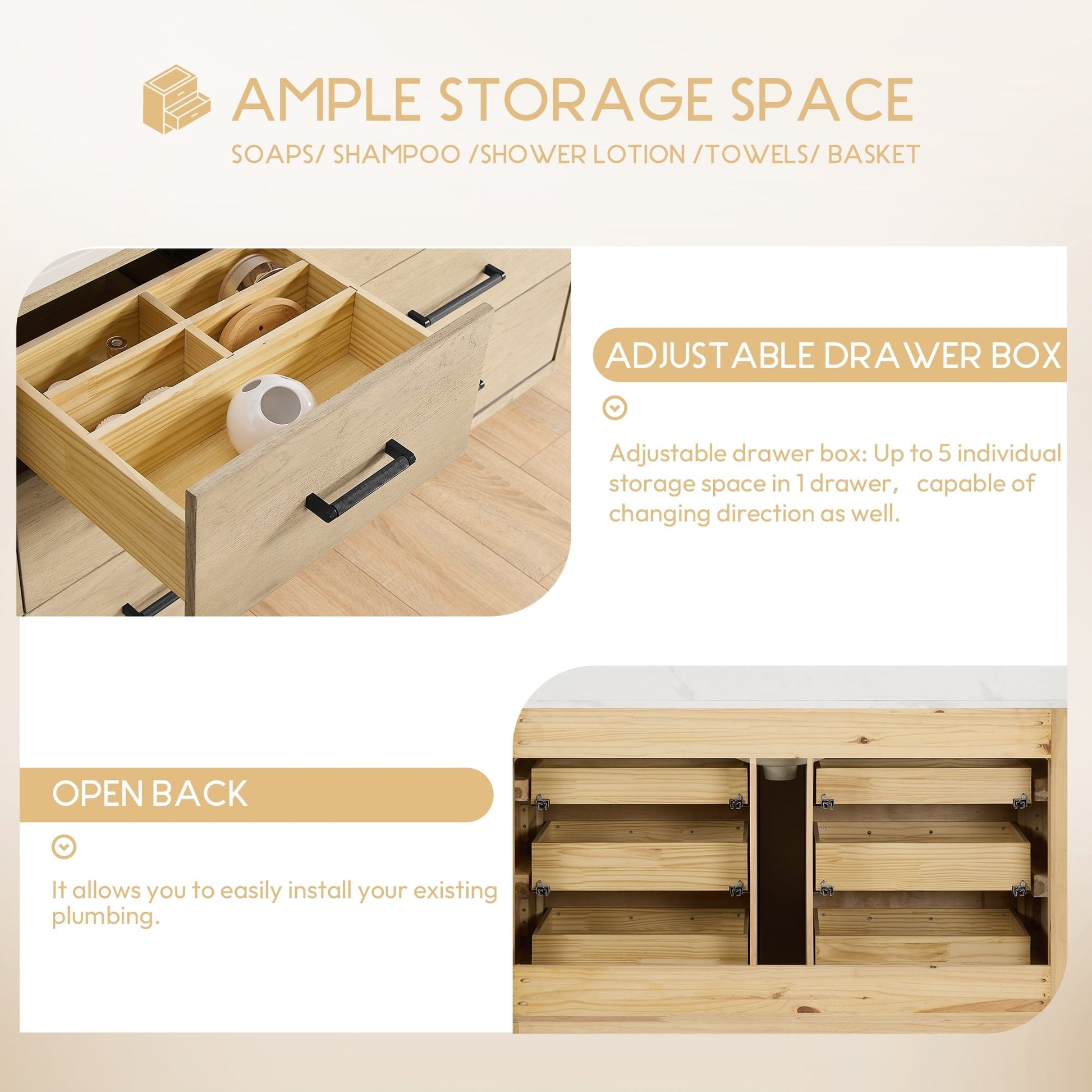 60 pouces - Six tiroirs à queue d'aronde robustes à fermeture douce sont dotés de cloisons intégrées pour un accès facile à tous vos articles de toilette.