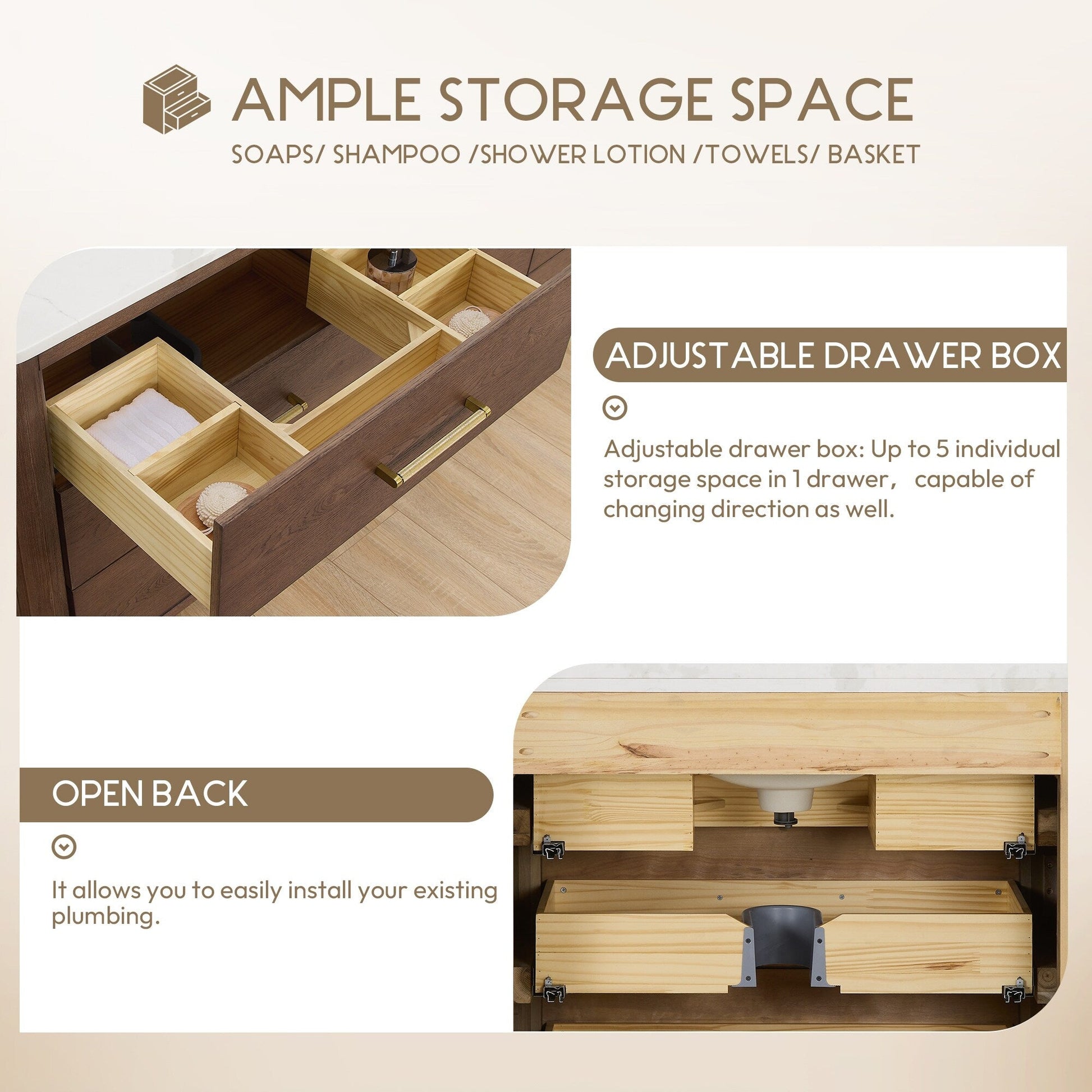 Installation requise : le meuble-lavabo de salle de bain autoportant est livré entièrement assemblé pour votre commodité (pas de panneau arrière). Conçu pour une installation facile et sans tracas de la plomberie et du robinet.