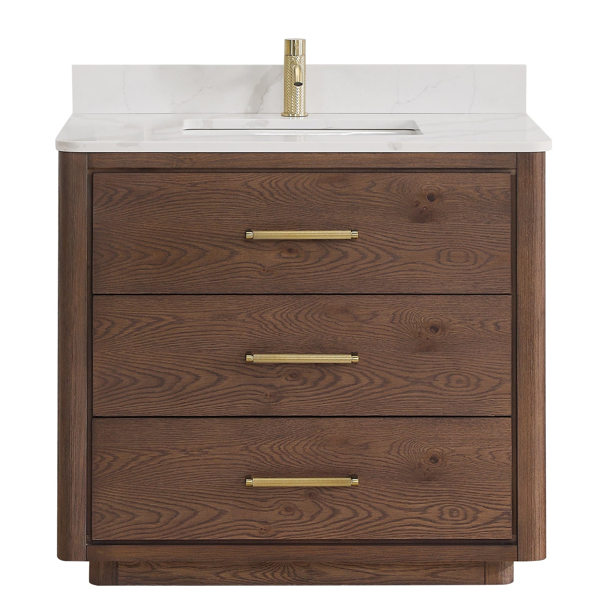 Transformez votre salle de bains en un havre de style et de sophistication grâce à notre meuble-lavabo autoportant de la série Porto, un meuble alliant savoir-faire artisanal et praticité au quotidien. Ce meuble raffiné allie la chaleur et l'élégance texturées du chêne massif au quartz blanc immaculé, créant un style à la fois accueillant et captivant. Ses profonds tiroirs à queue d'aronde avec compartiments vous permettent de ranger vos essentiels de manière discrète et organisée.