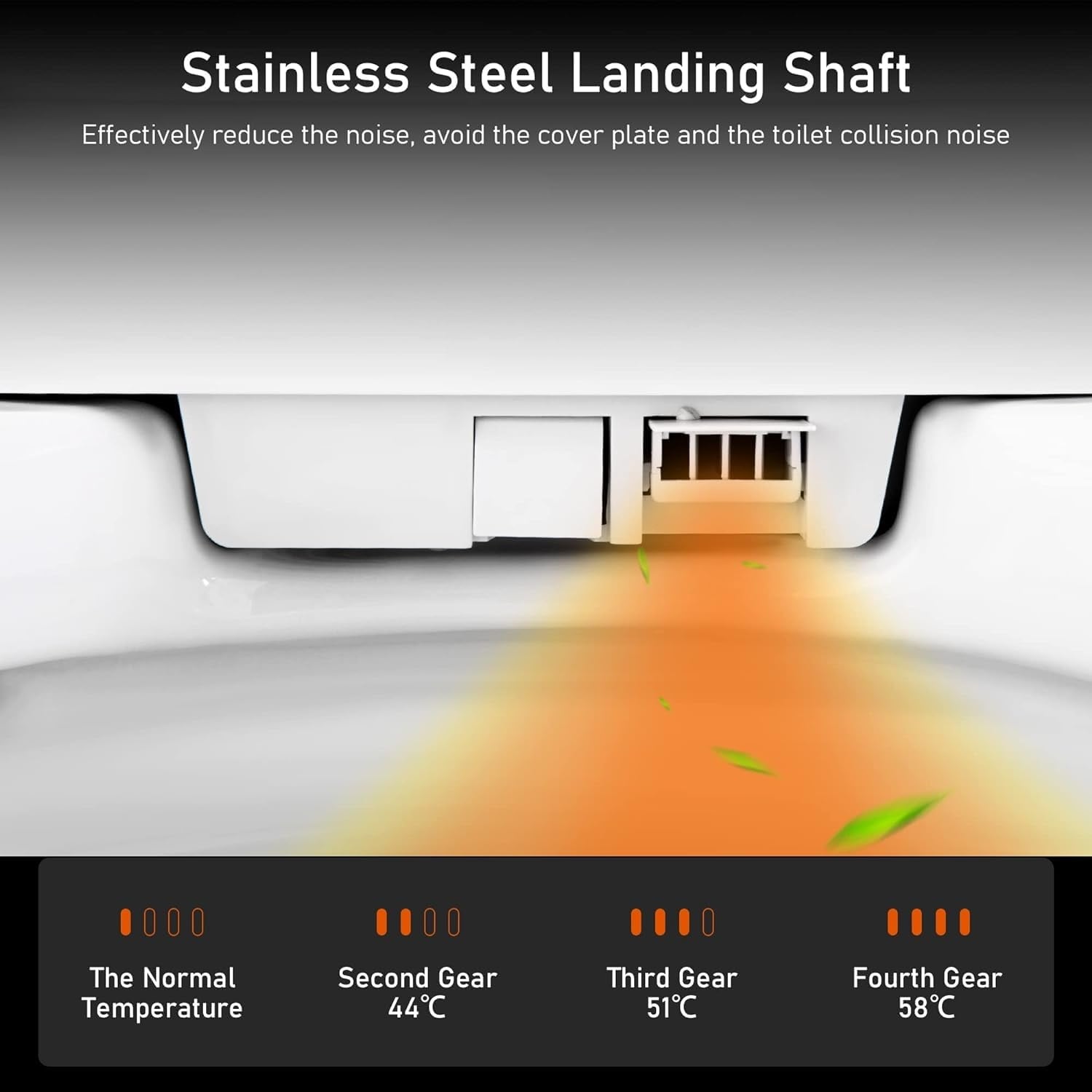 • Toilettes intelligentes Morden : ouverture et fermeture automatiques de l'abattant, ouverture de l'abattant par capteur de pied, siège chauffant, chasse d'eau automatique, chasse d'eau sans alimentation, température réglable, buse autonettoyante en acier inoxydable, veilleuse douce, système de purification d'air, eau chaude instantanée et sèche-cheveux à air chaud. Profitez d'un confort accru grâce à un écran LED intuitif et une télécommande.