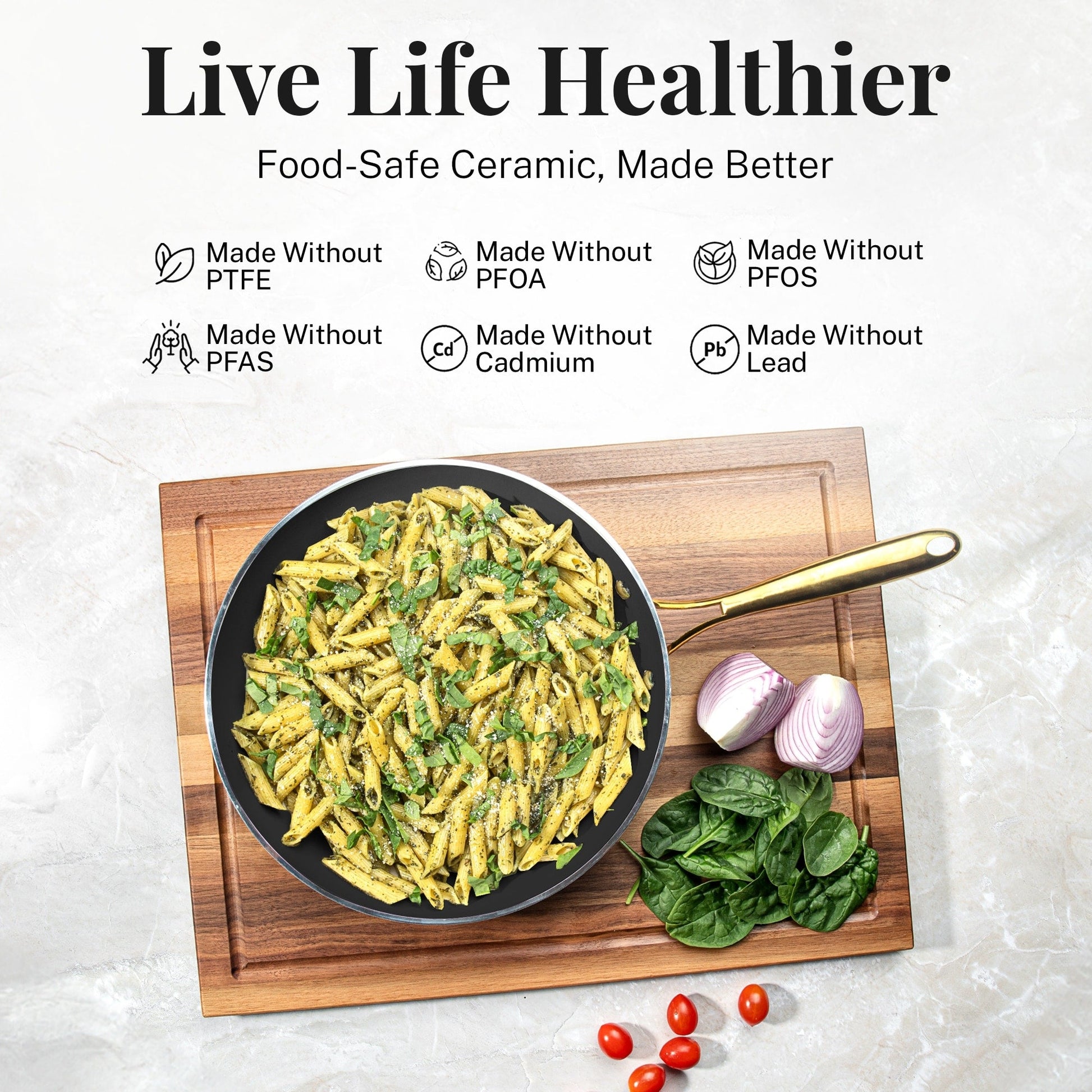 Sûr et non toxique : Fabriqué sans PTFE, PFOA, PFOS, PFAS, plomb et cadmium, cet ensemble de batterie de cuisine favorise une cuisine plus saine pour vous et votre famille, ce qui en fait un choix écologique et sûr.