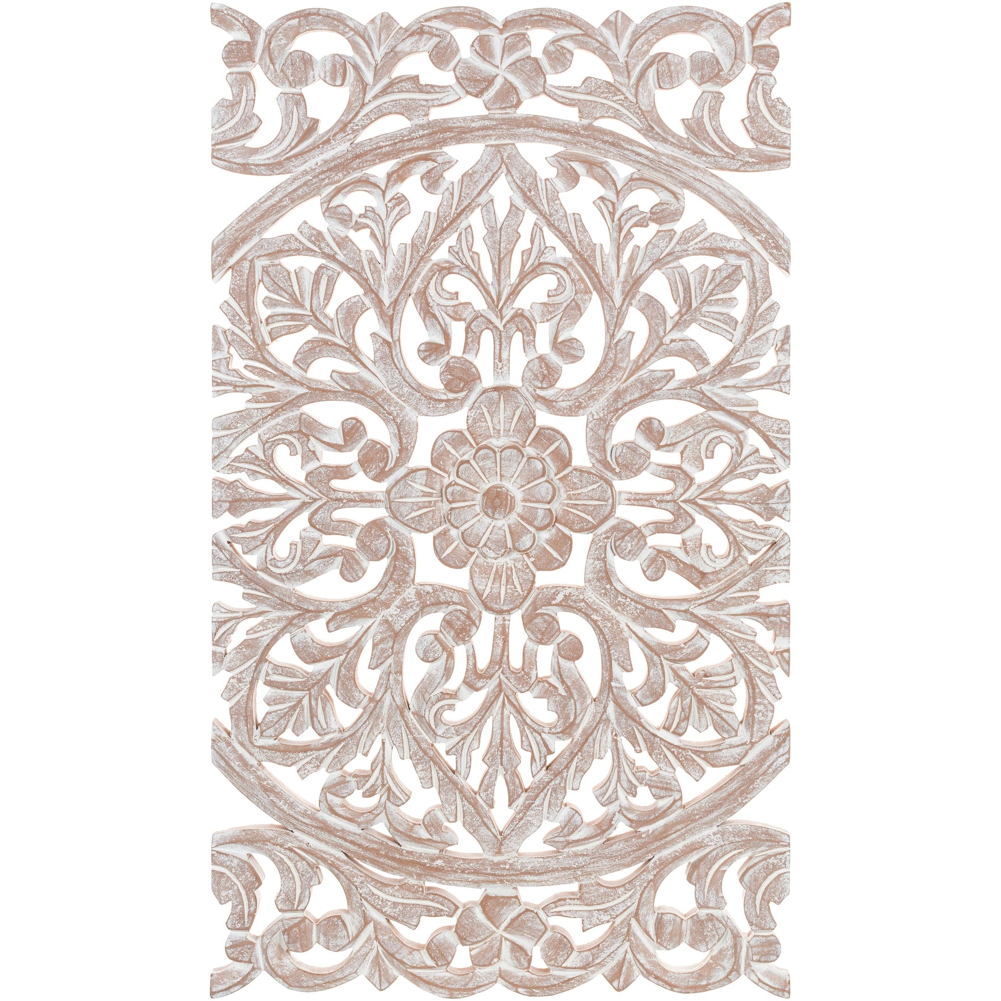 Décoration murale à 3 panneaux en bois naturel sculpté à la main Norma Floral 48 x 28 pouces