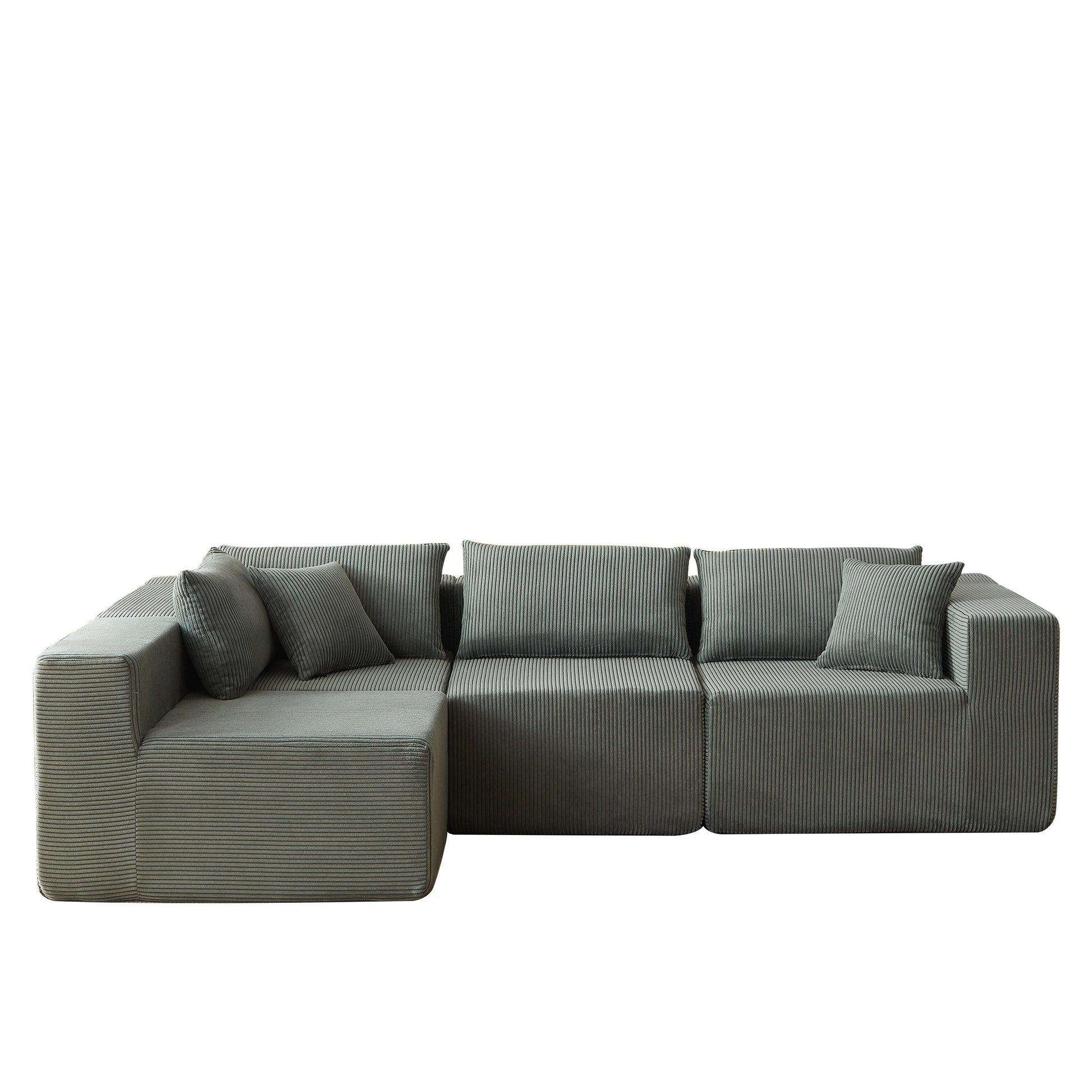 Canapé modulaire en L de 104 pouces en velours côtelé, ensemble de canapés de sol, canapé compressé rempli de mousse, combinaison gratuite de 4 pièces