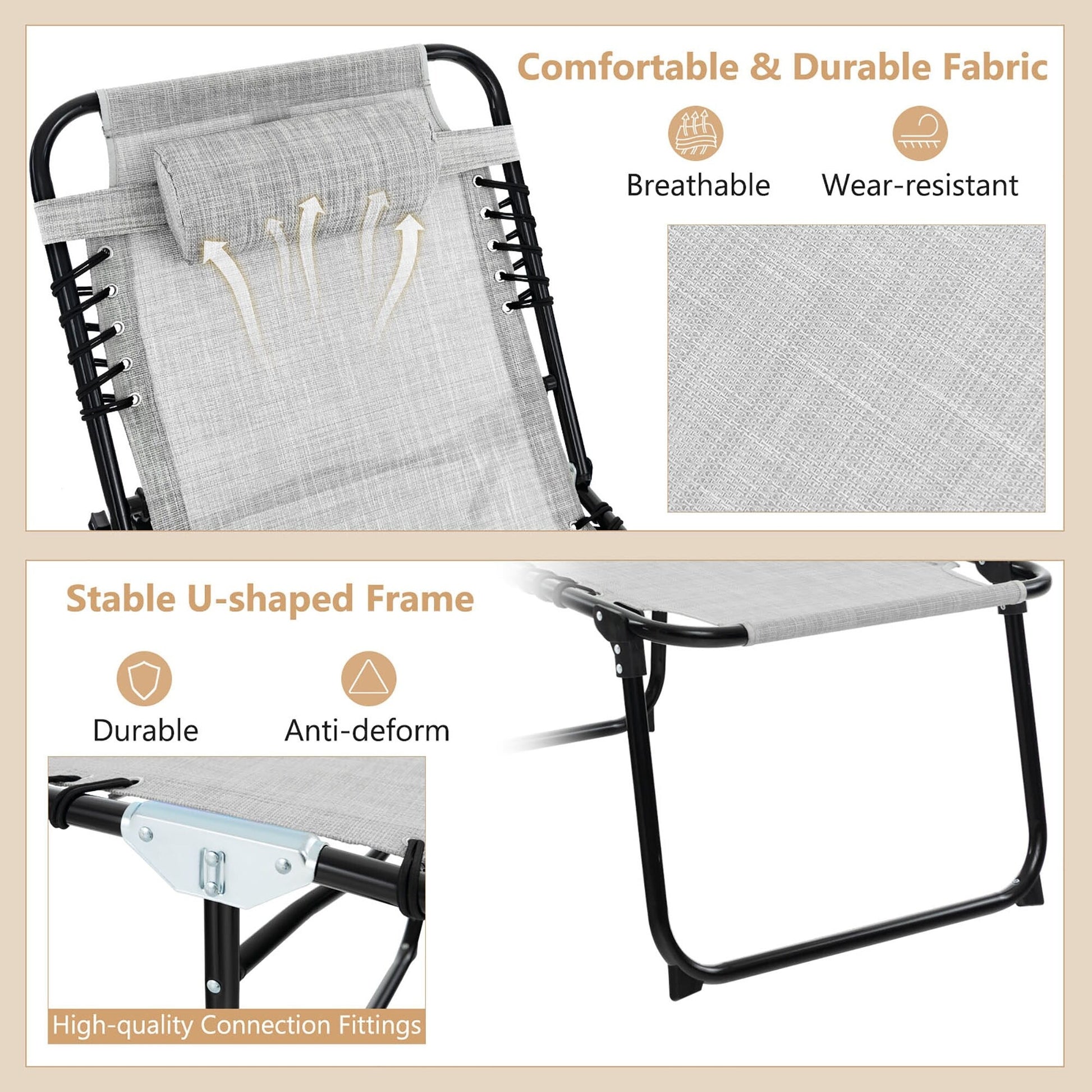 Chaise longue de plage pliante Gymax avec oreiller,...