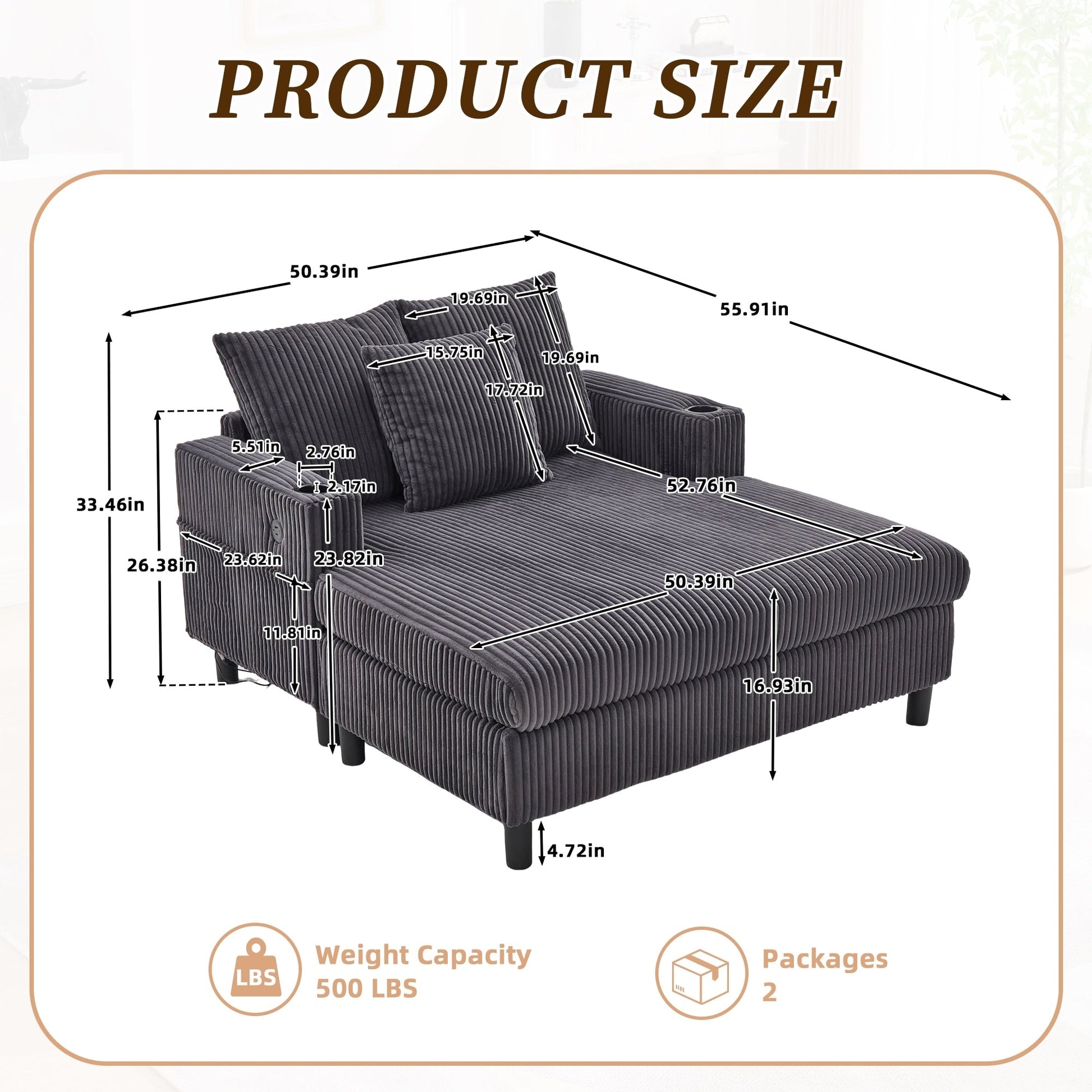 Canapé-lit inclinable surdimensionné HOMEFUN en velours côtelé avec...