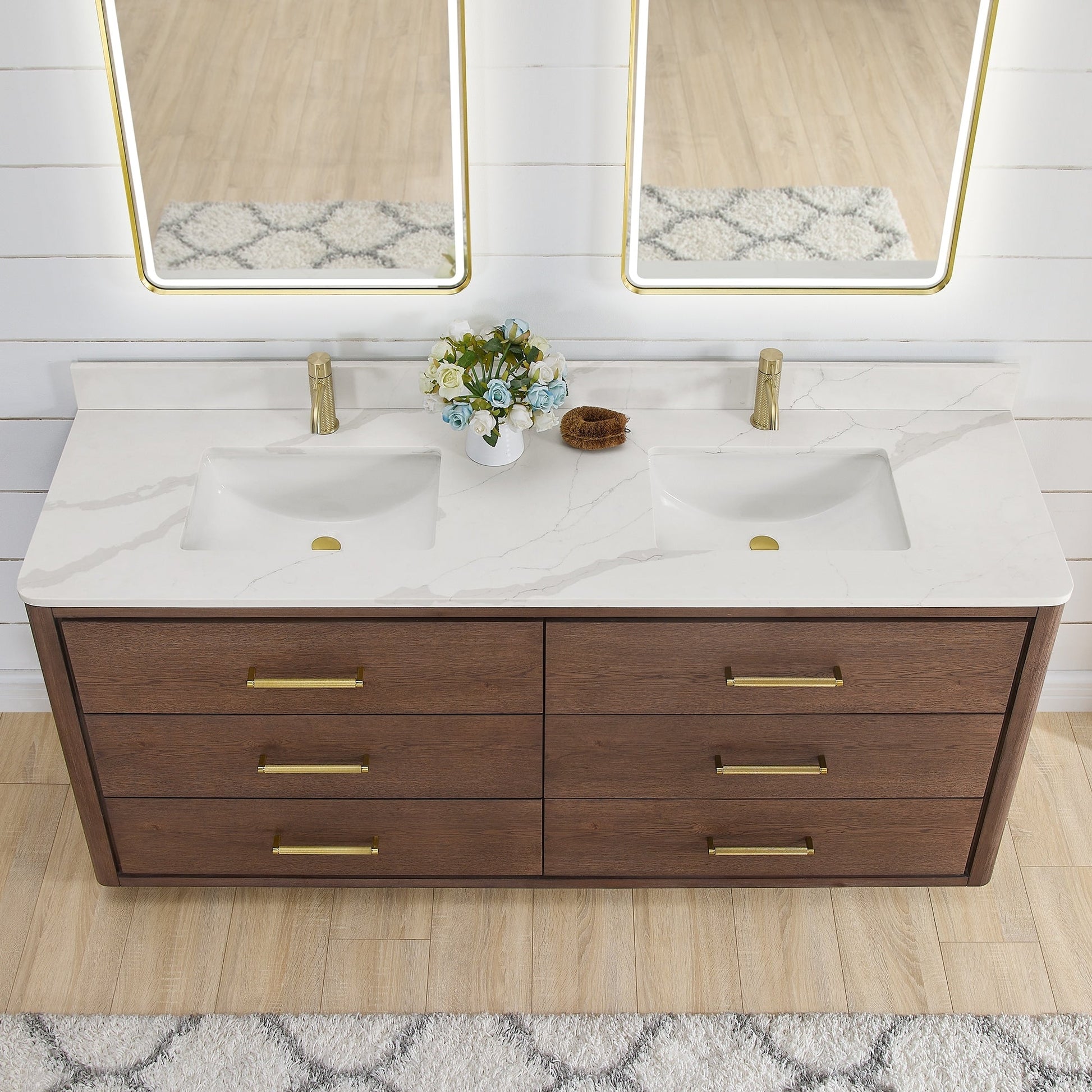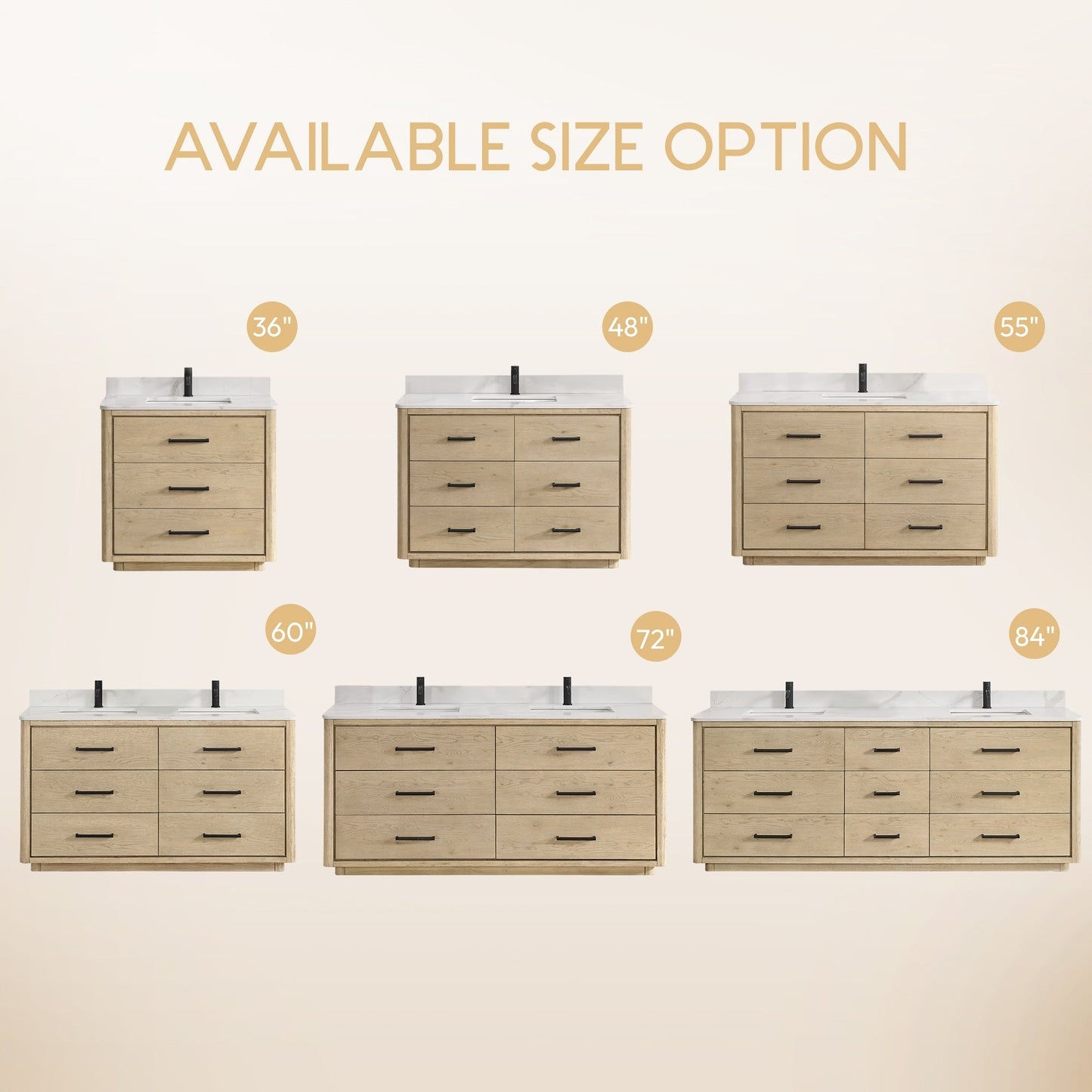 Transformez votre salle de bains en un havre de style et de sophistication grâce à notre meuble-lavabo autoportant de la série Porto, un meuble alliant savoir-faire artisanal et praticité au quotidien. Ce meuble raffiné allie la chaleur et l'élégance texturées du chêne massif au quartz blanc immaculé, créant un style à la fois accueillant et captivant. Ses profonds tiroirs à queue d'aronde avec compartiments vous permettent de ranger vos essentiels de manière discrète et organisée.