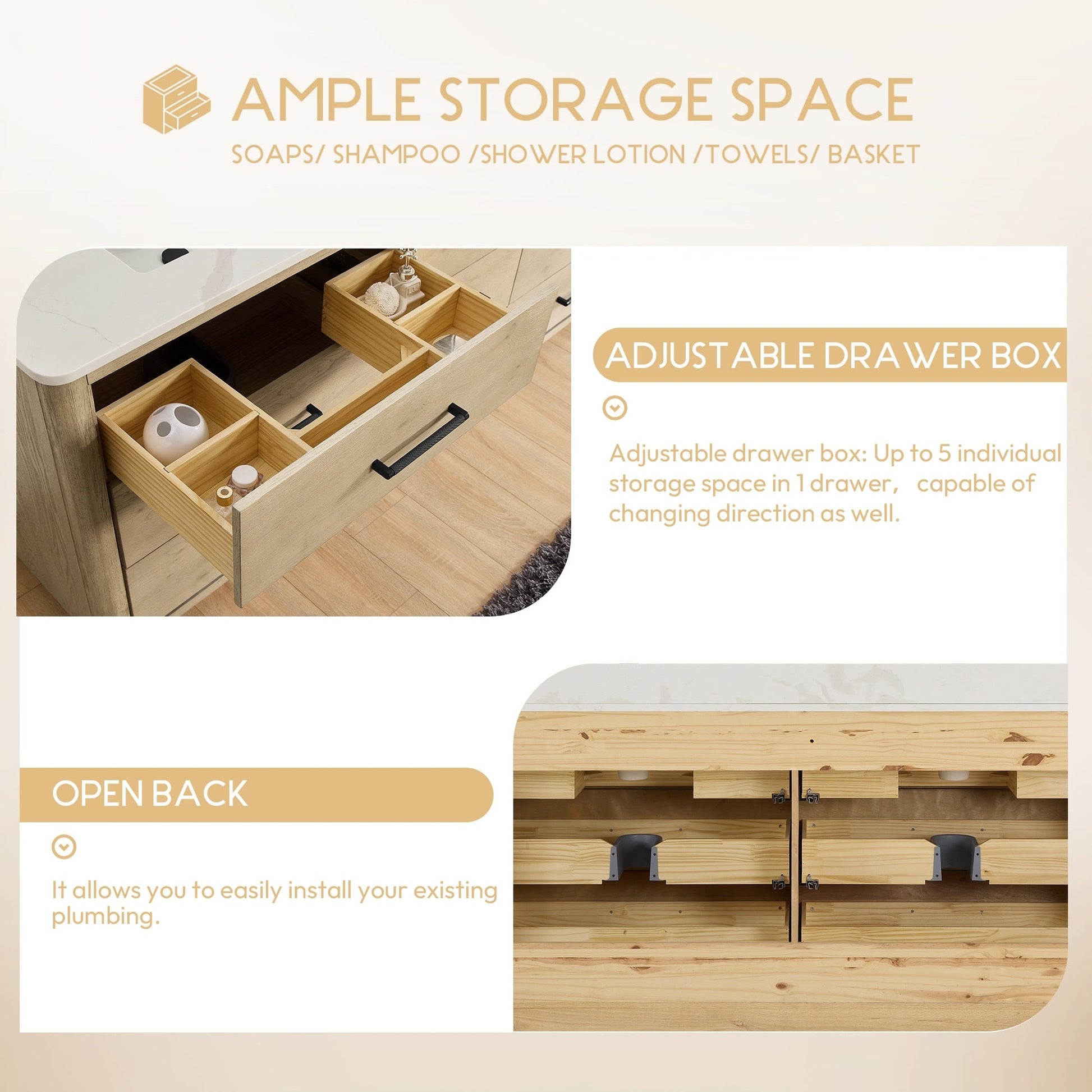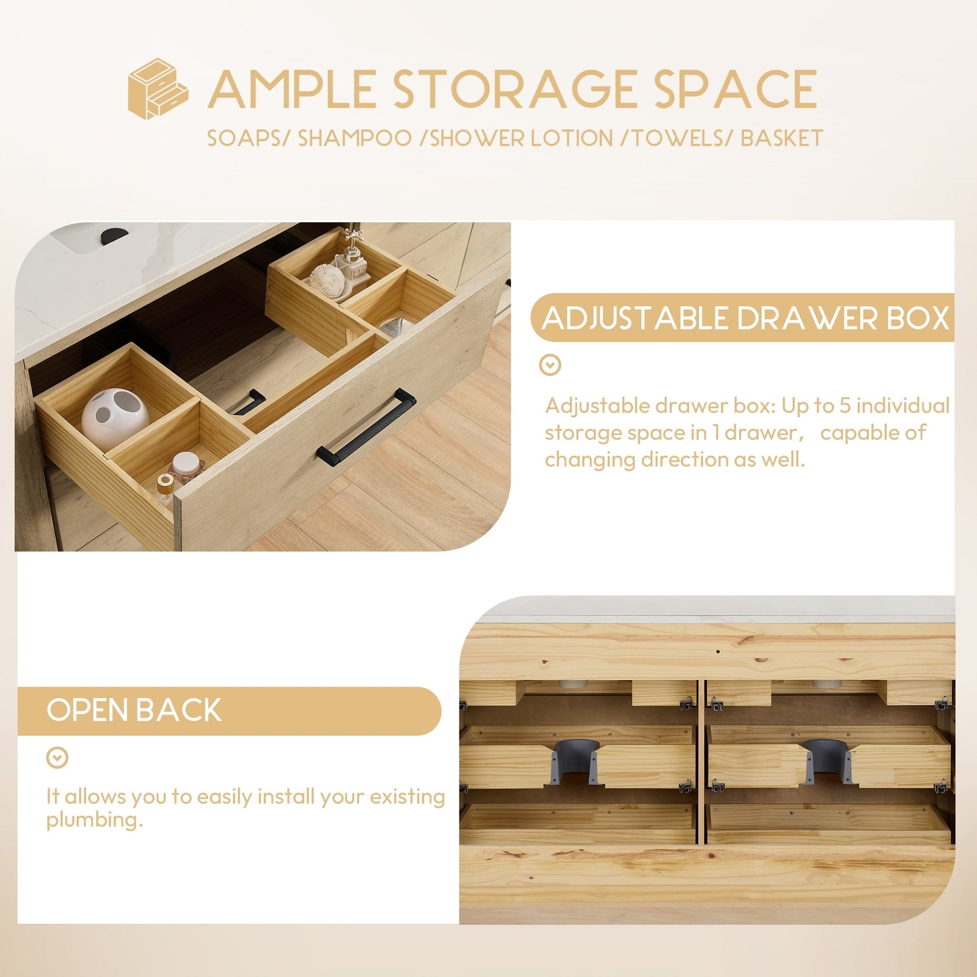 60 pouces - Six tiroirs à queue d'aronde robustes à fermeture douce sont dotés de cloisons intégrées pour un accès facile à tous vos articles de toilette.
