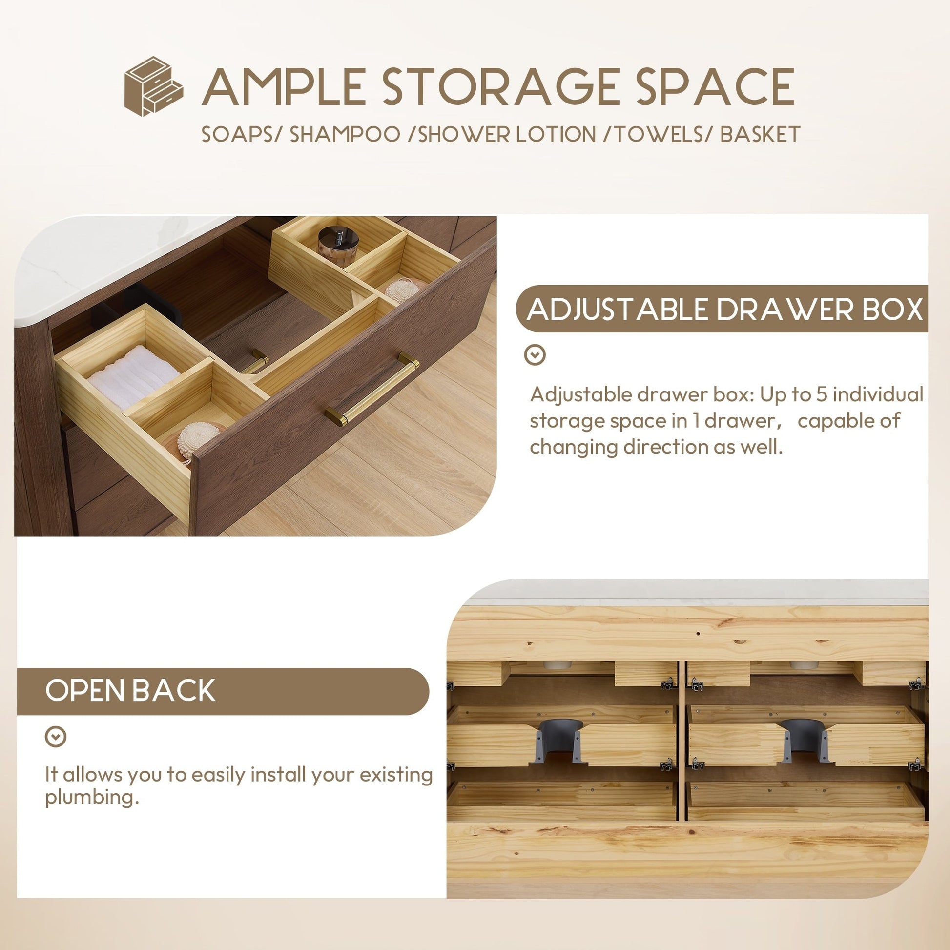 72 pouces - Six tiroirs à queue d'aronde robustes à fermeture douce sont dotés de cloisons intégrées pour un accès facile à tous vos articles de toilette.