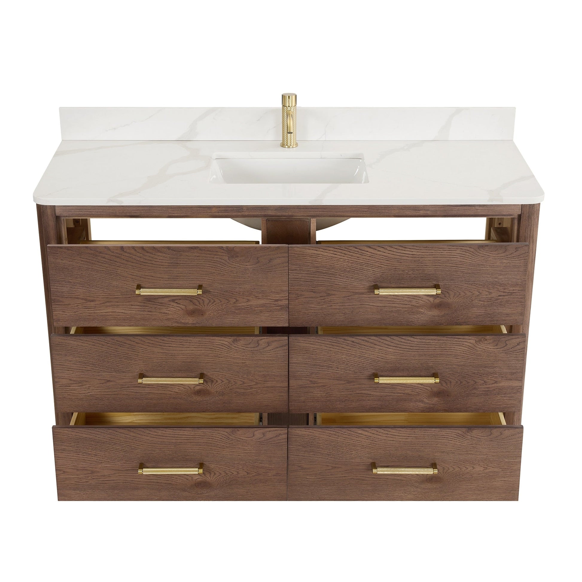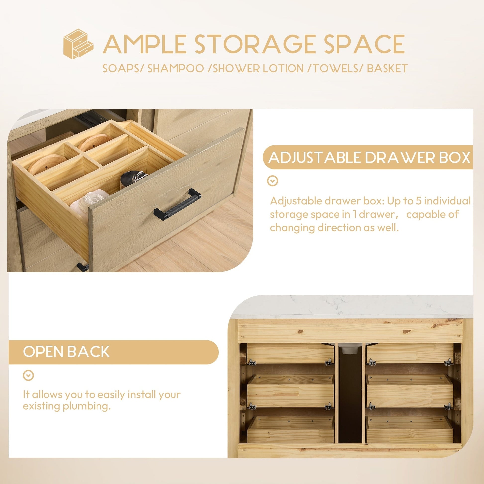 48 pouces - Six tiroirs à queue d'aronde robustes à fermeture douce sont dotés de cloisons intégrées pour un accès facile à tous vos articles de toilette.