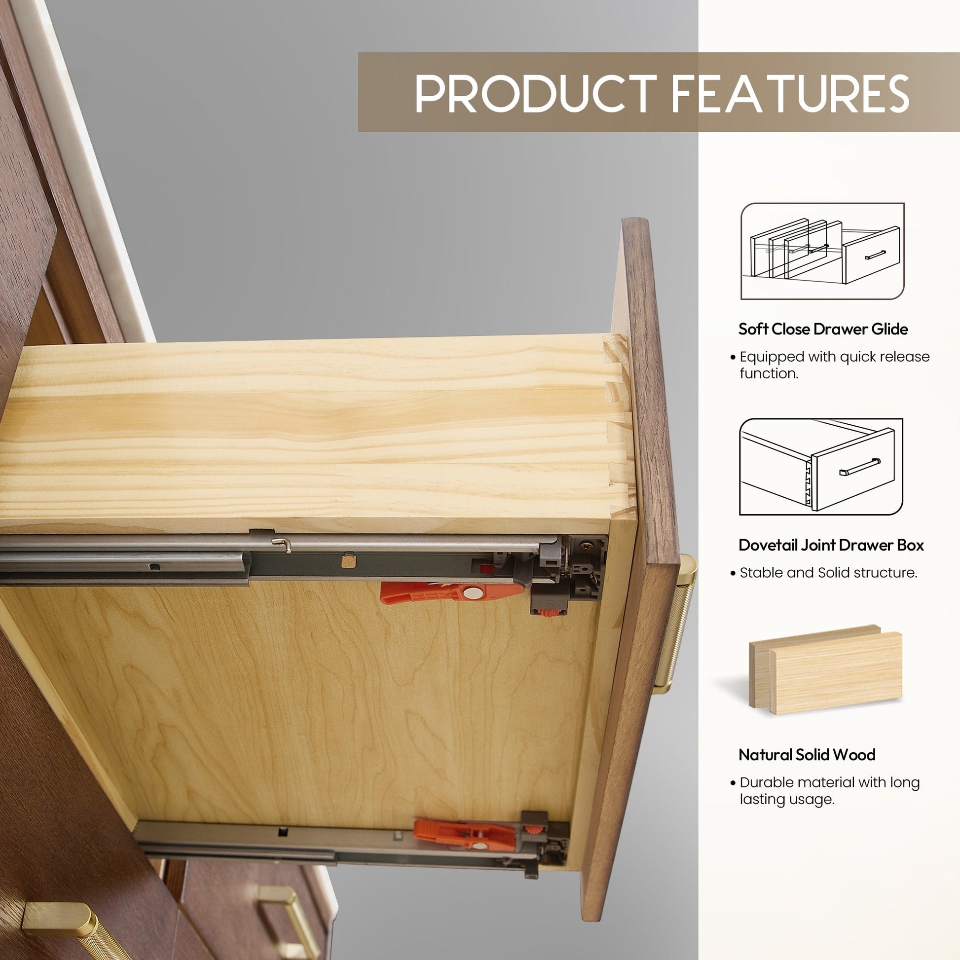 36 pouces - Trois tiroirs à queue d'aronde robustes et à fermeture en douceur sont dotés de cloisons intégrées pour un accès facile à tous vos articles de toilette.