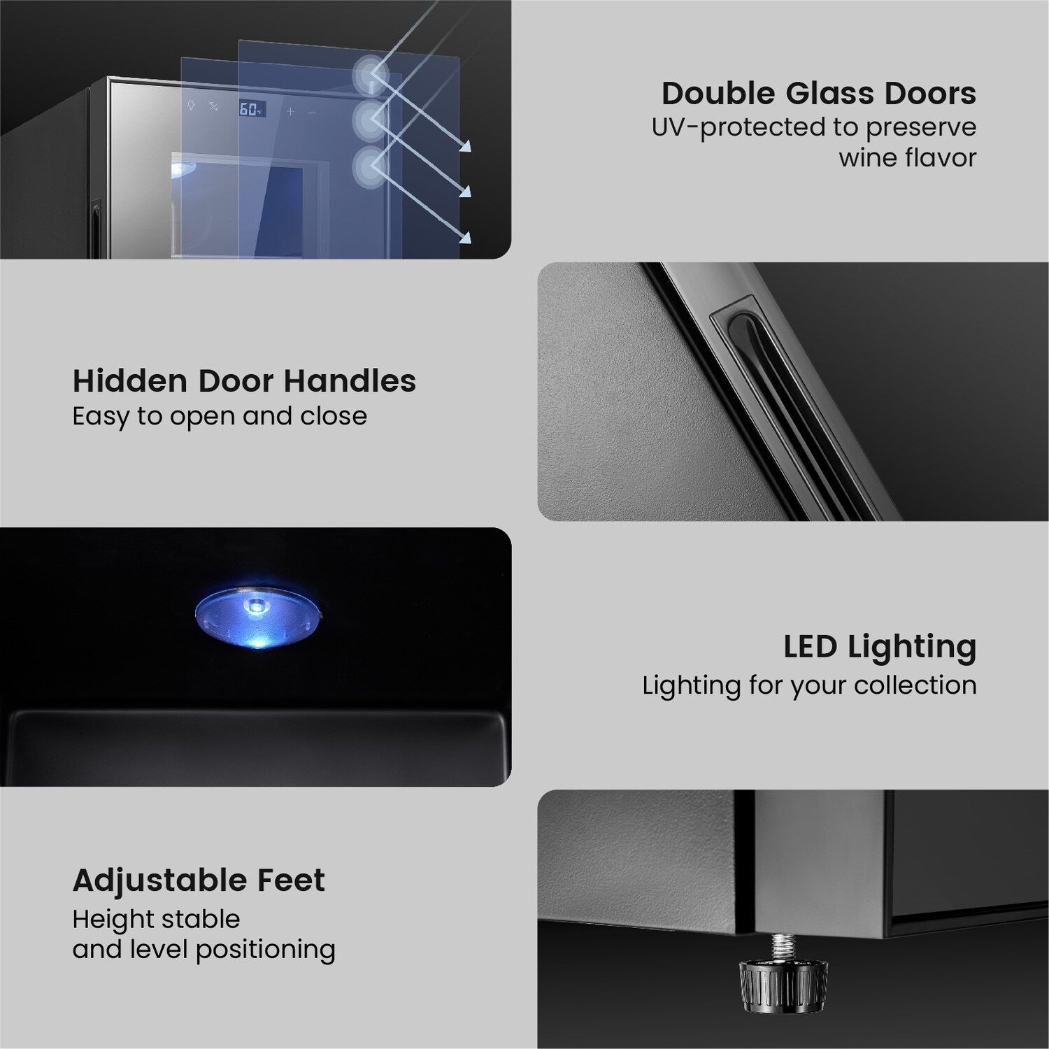• Conservation avancée : équipé d'un ventilateur interne pour une distribution uniforme du refroidissement et un contrôle de l'humidité, assurant une conservation optimale du vin pour des saveurs et des arômes améliorés.