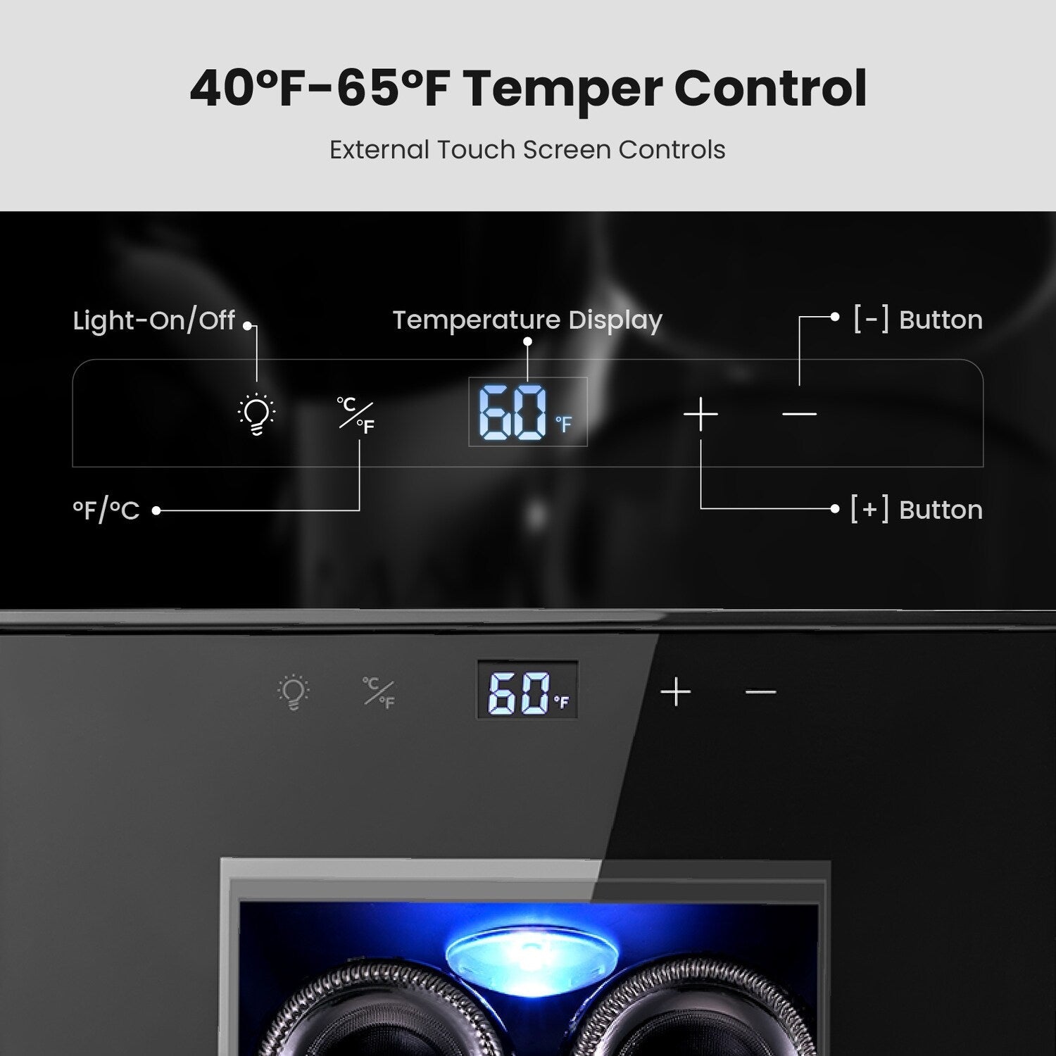 • Panneau tactile intelligent : contrôlez et surveillez sans effort les températures grâce à l'interface intuitive du panneau tactile, garantissant que vos vins sont stockés dans des conditions optimales.