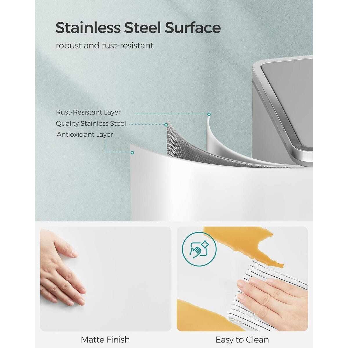 • [Solide mais doux] Le corps rigide en acier inoxydable de cette poubelle résiste à une utilisation durable ; le couvercle à fermeture douce garantit que l'environnement reste paisible, sans claquement bruyant à entendre