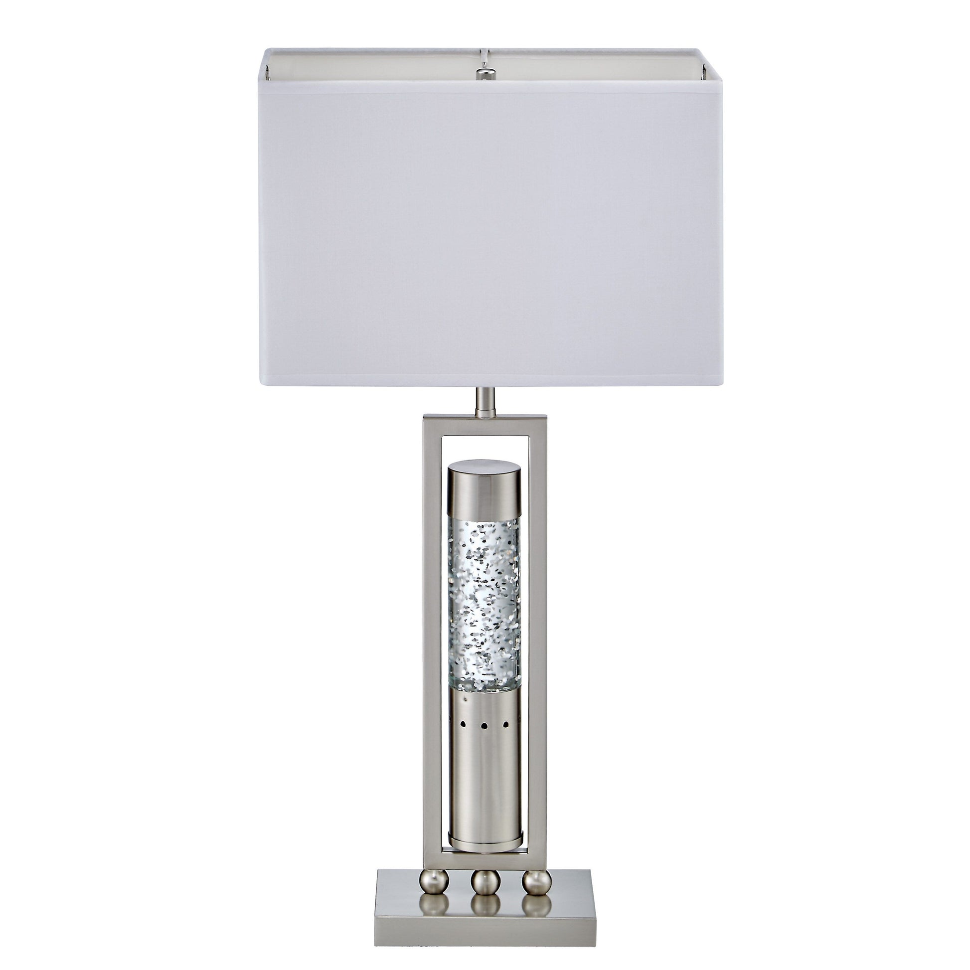 Cet éclairage d'appoint peut transformer l'ambiance de n'importe quelle pièce. Son design ultra-moderne diffuse une lumière d'ambiance décorative scintillante, avec de minuscules gouttes d'eau ondulantes simulant le mouvement apaisant de l'eau. Son pied magnifiquement conçu est en métal et verre finition nickel satiné de haute qualité, et est doté d'un élégant abat-jour rectangulaire. Son interrupteur à 4 positions permet de choisir entre 4 modes : lumière supérieure allumée, lumière inférieure allumée, les deux allumées et les deux éteintes. Un atout précieux sur votre table de chevet, table d'appoint ou table basse. Elle offre une solution d'éclairage flexible : lampe de table avec une lumière principale idéale pour la lecture, idéale comme veilleuse ou pour créer une ambiance chaleureuse dans n'importe quelle pièce.