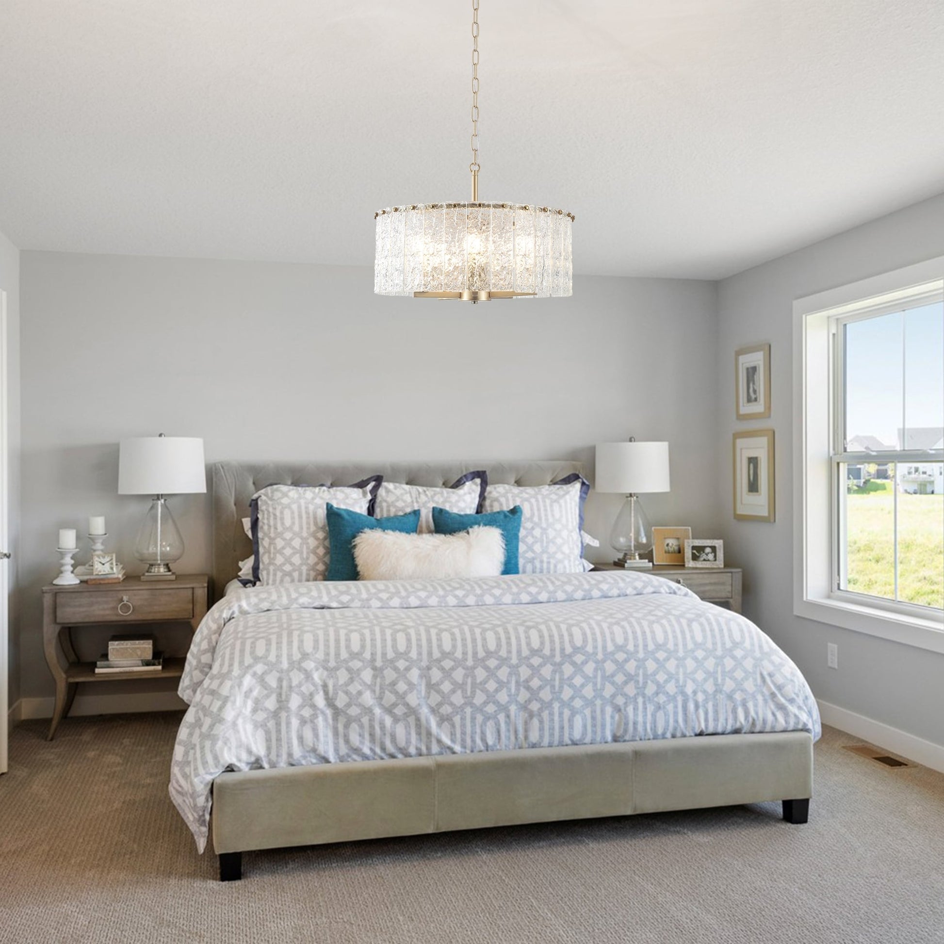 Design élégant : doté d'une forme de tambour sophistiquée et d'accents en cristal, ce luminaire ajoute une touche de luxe à n'importe quel espace.