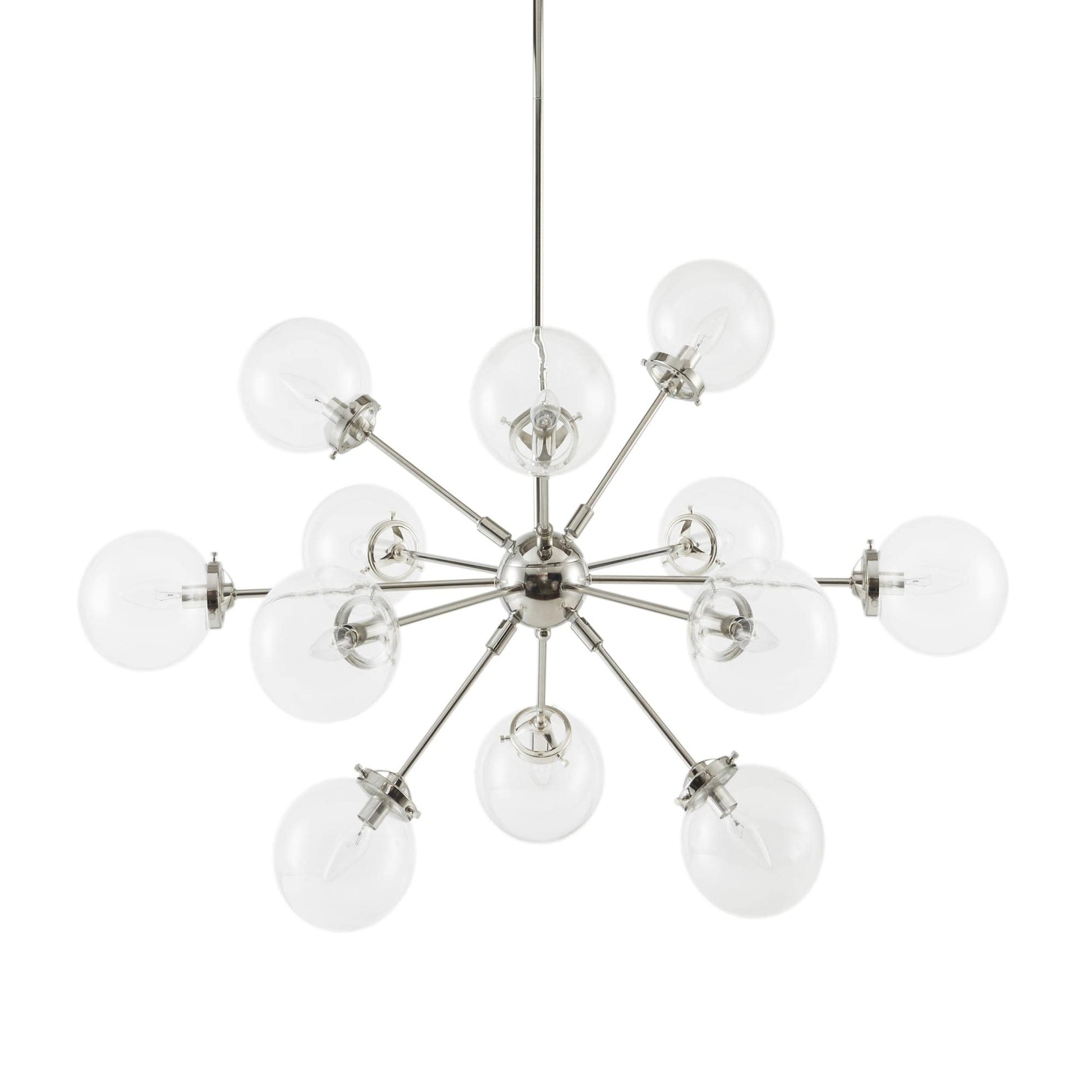 • Lustre moderne du milieu du siècle avec 12 ampoules rondes transparentes surdimensionnées