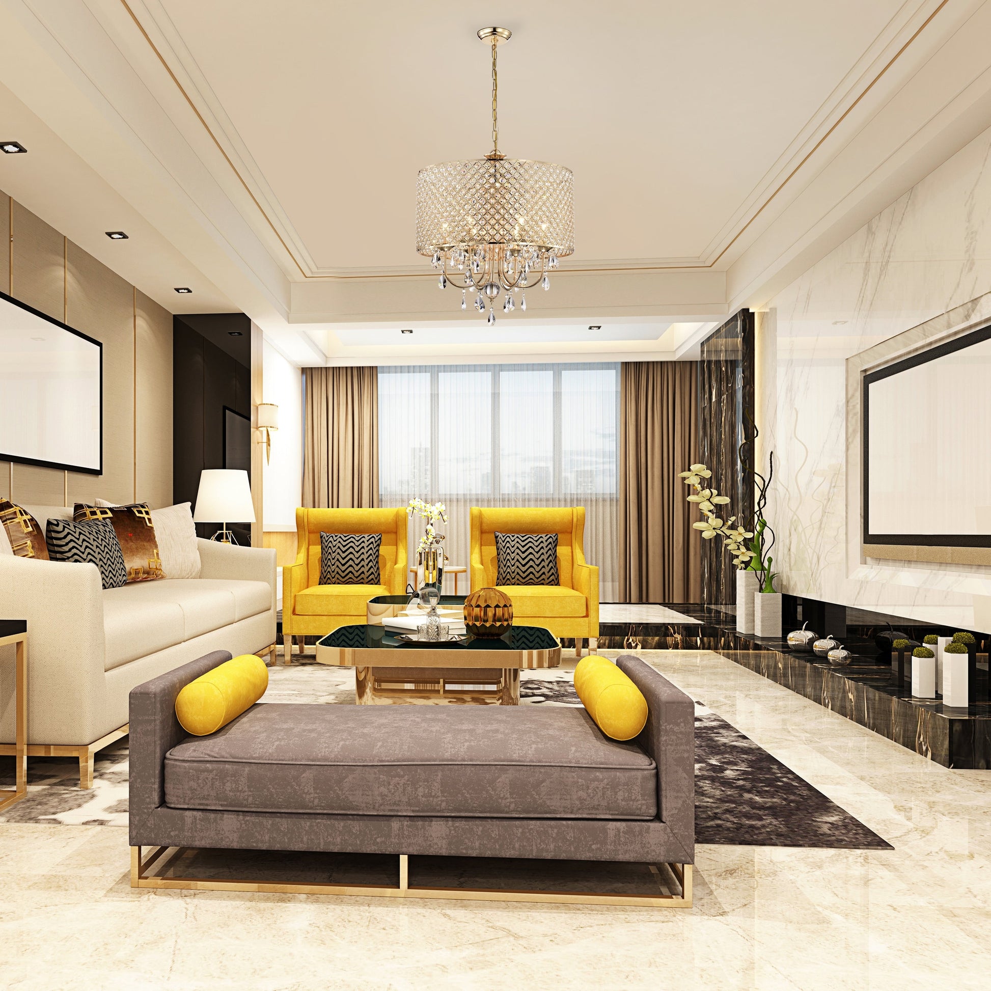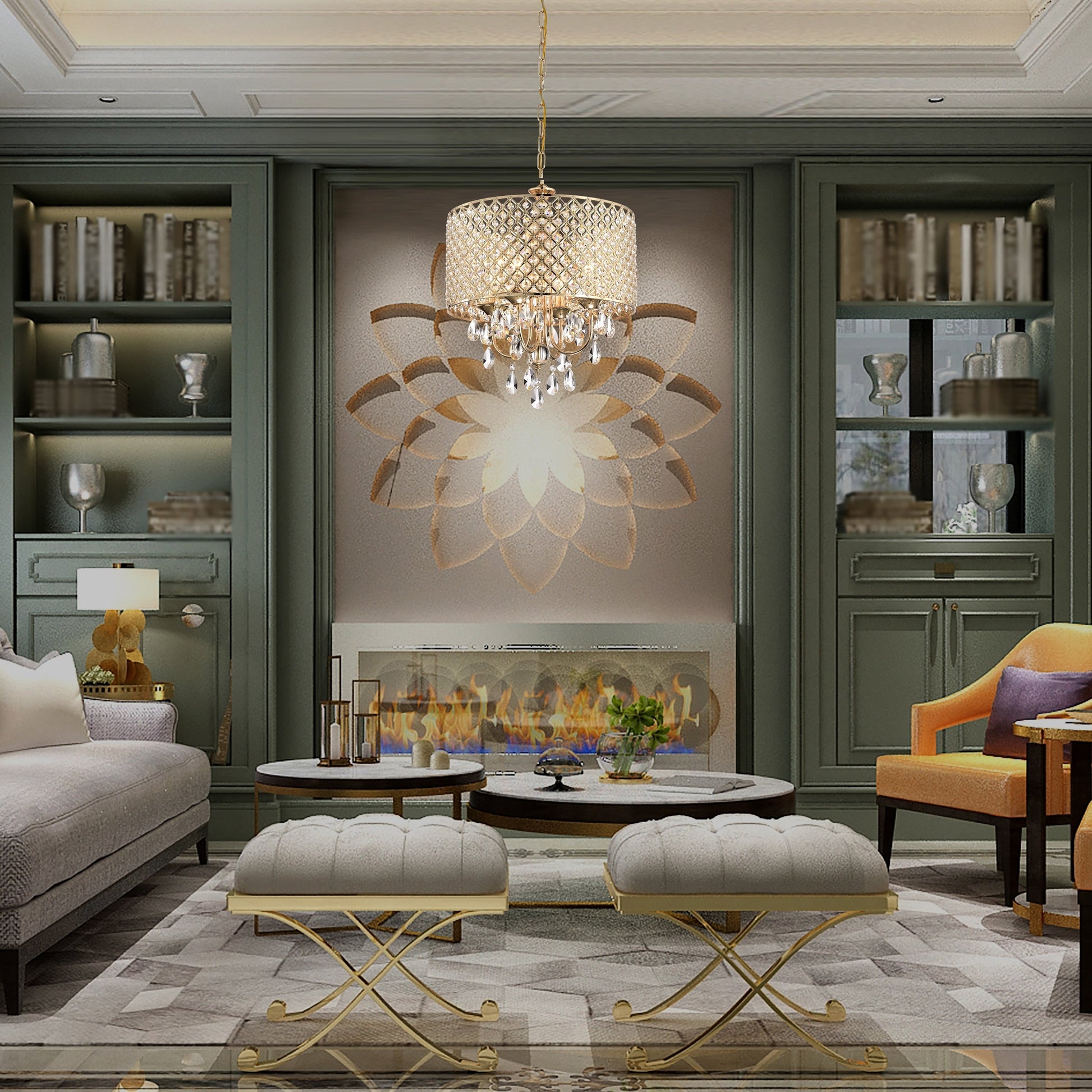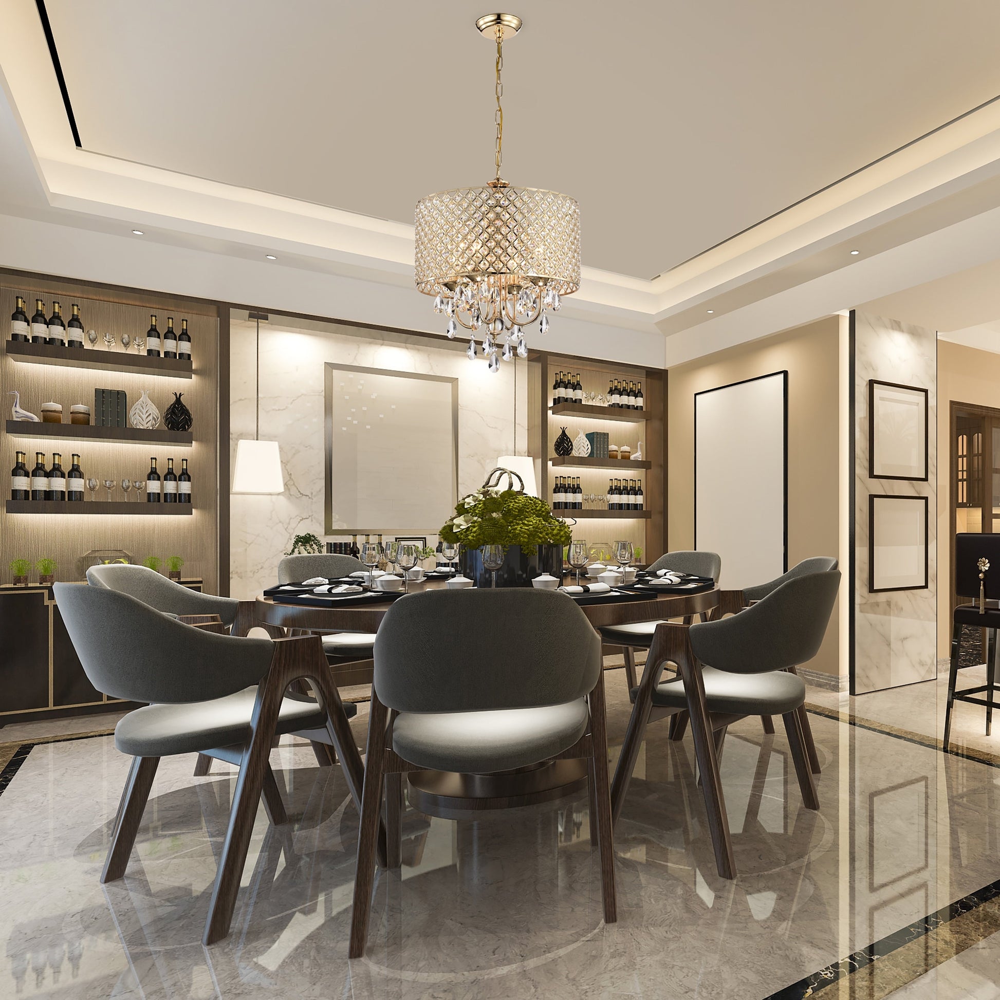 Lustre tambour à perles rondes avec cristaux suspendus