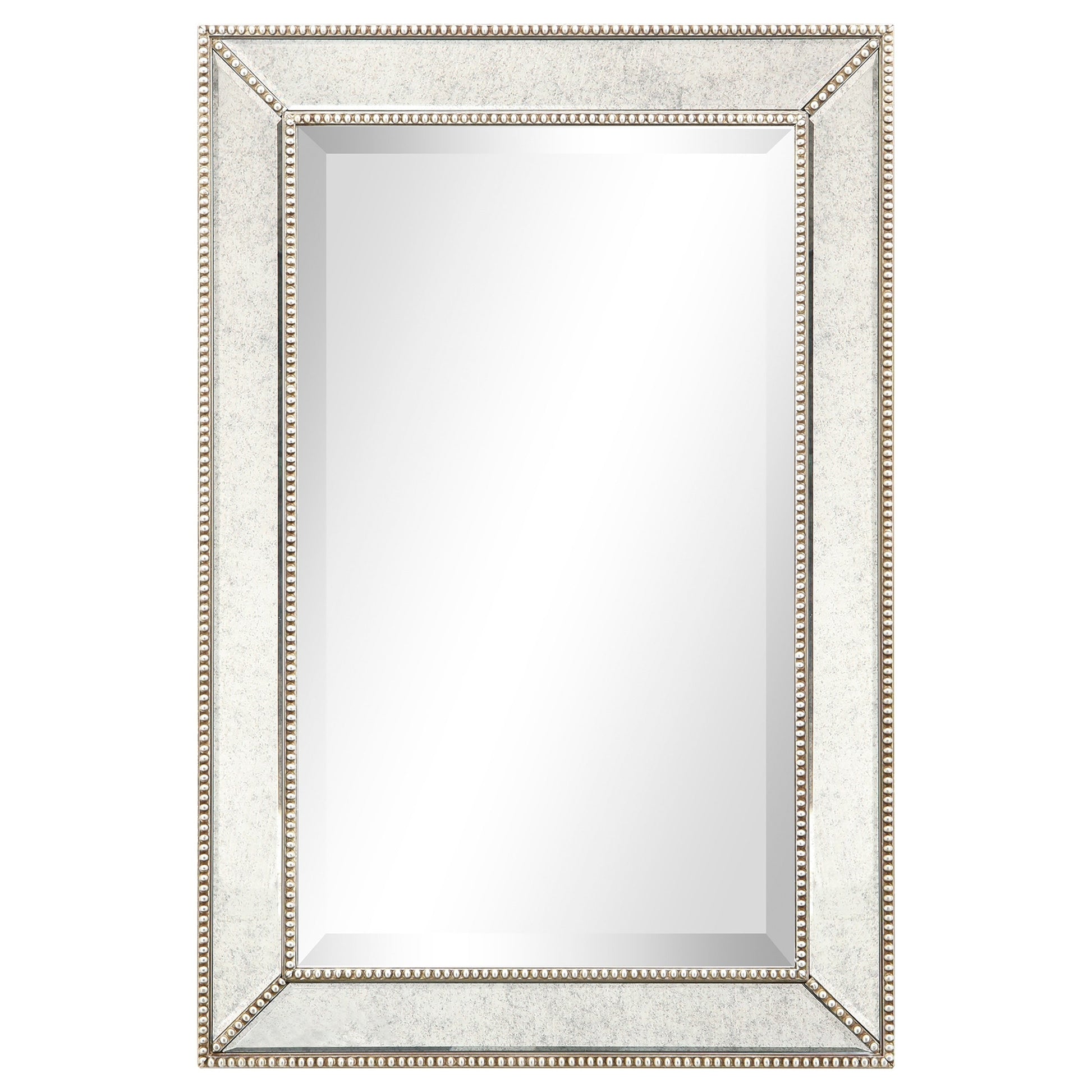 Miroir mural rectangulaire biseauté en perles de champagne...