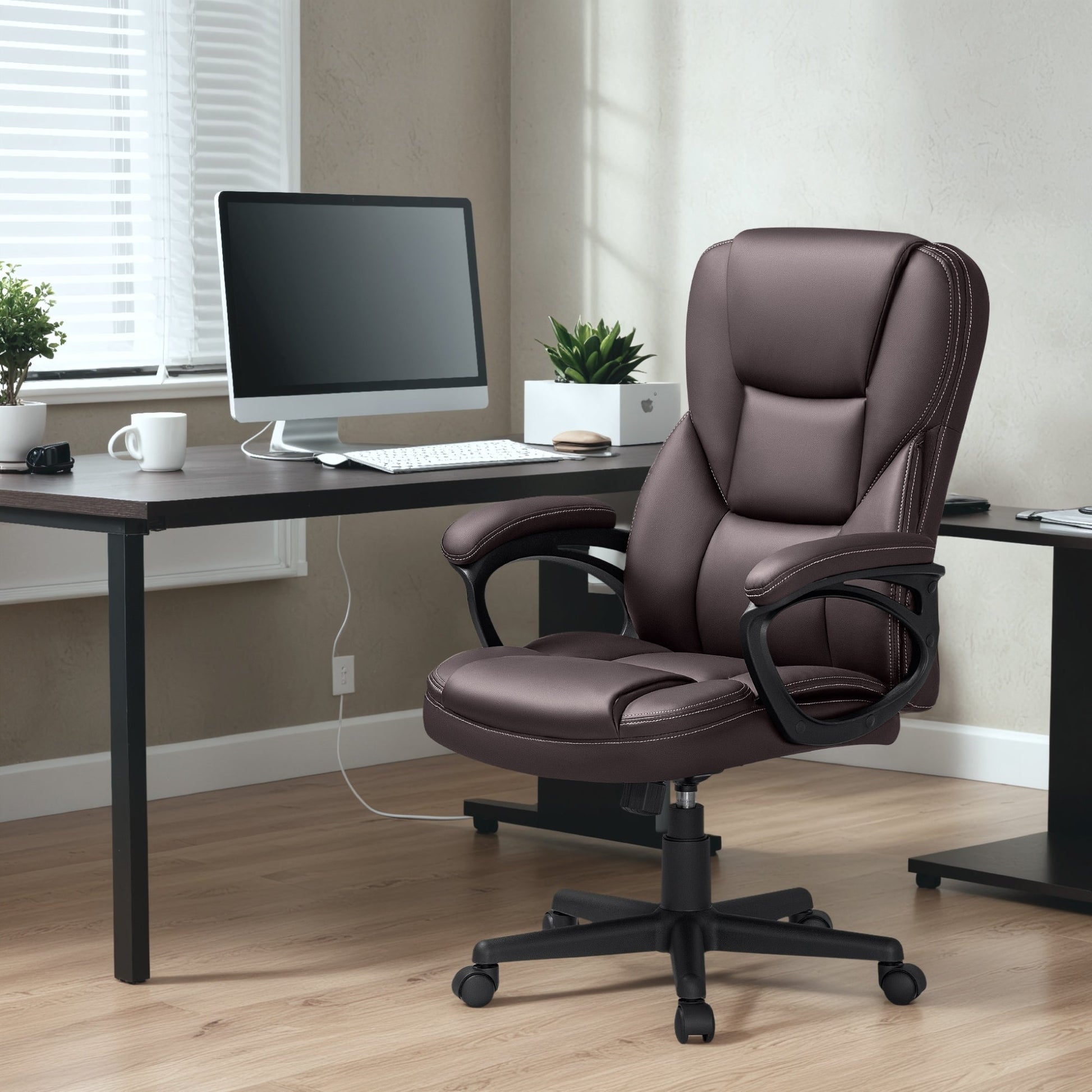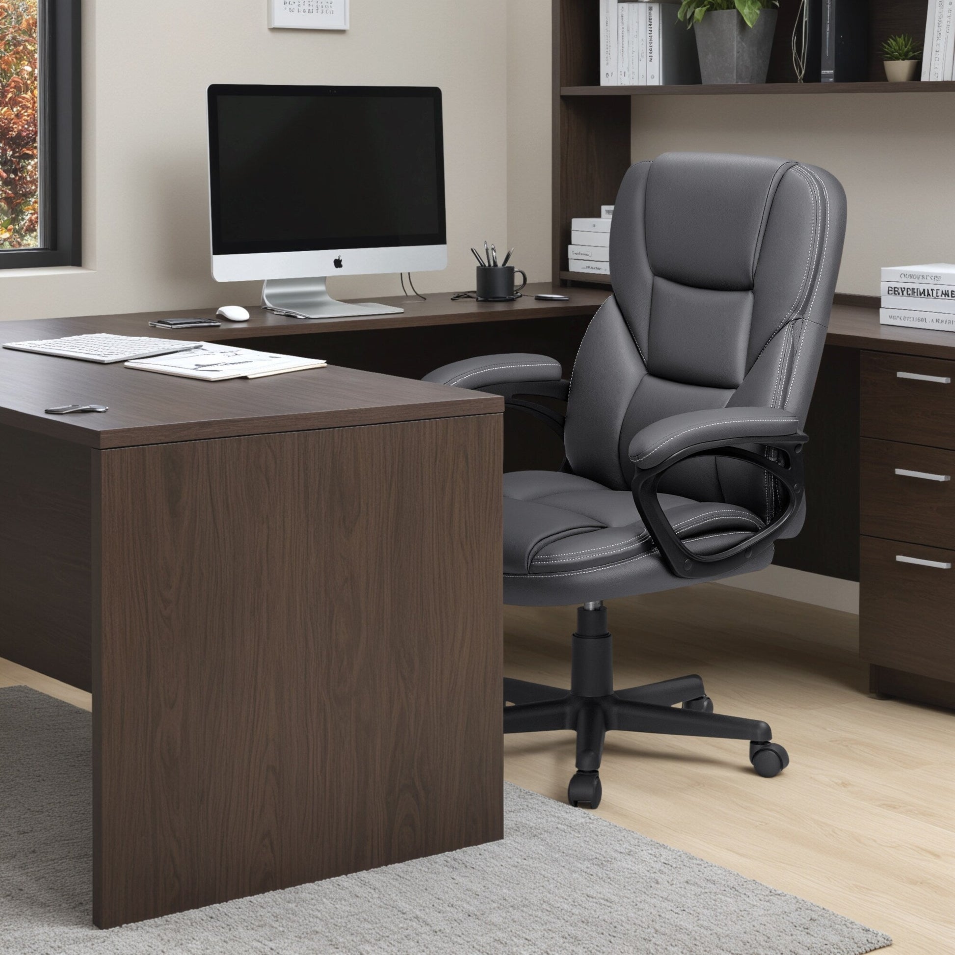 Travaillez confortablement assis sur ce fauteuil de bureau ergonomique. Son dossier rembourré et son assise rembourrée offrent un soutien optimal. Son rembourrage épais et sa texture moelleuse lui confèrent une excellente stabilité. Pivotant à 360 degrés, sa base robuste et ses roulettes à roulement fluide garantissent une structure parfaitement stable.