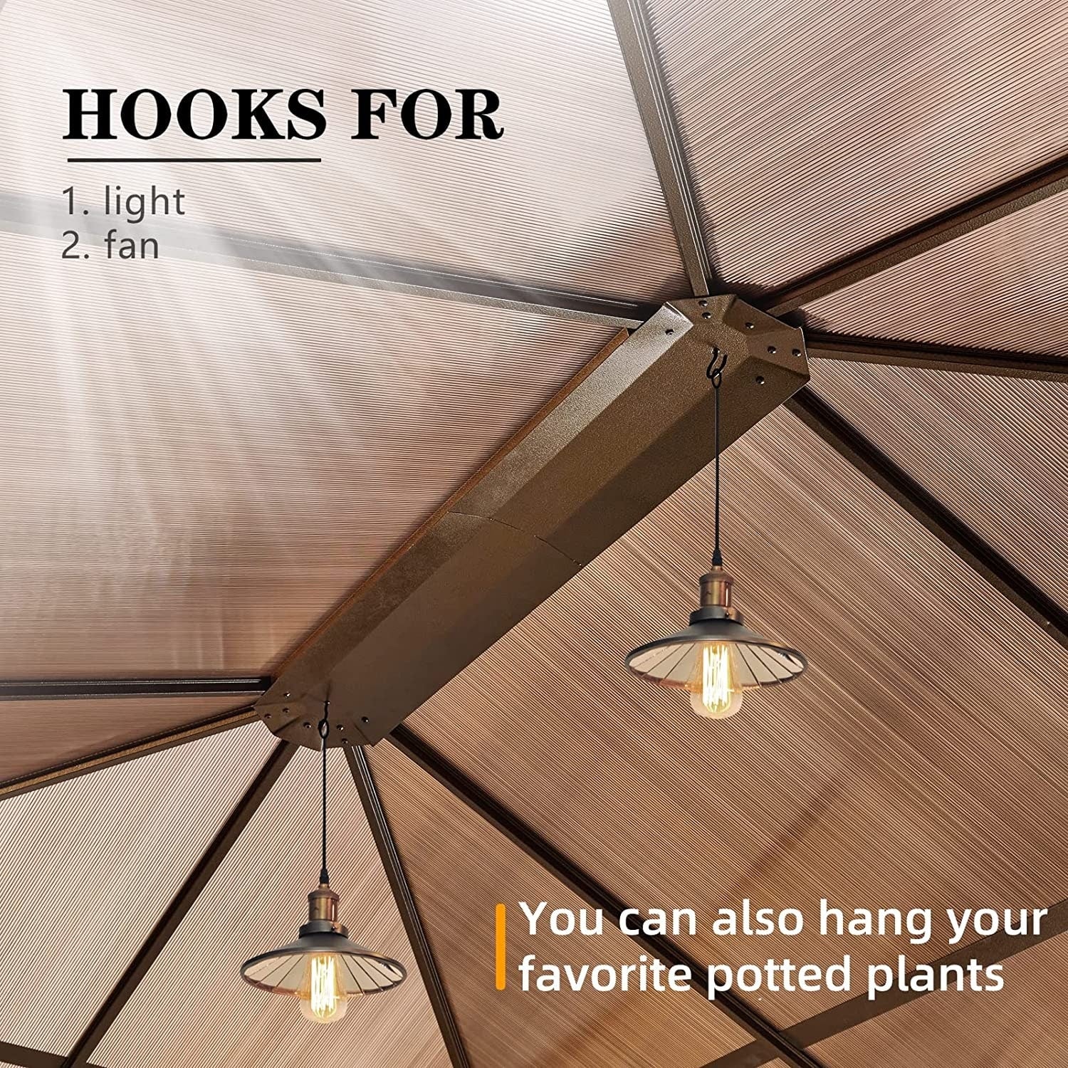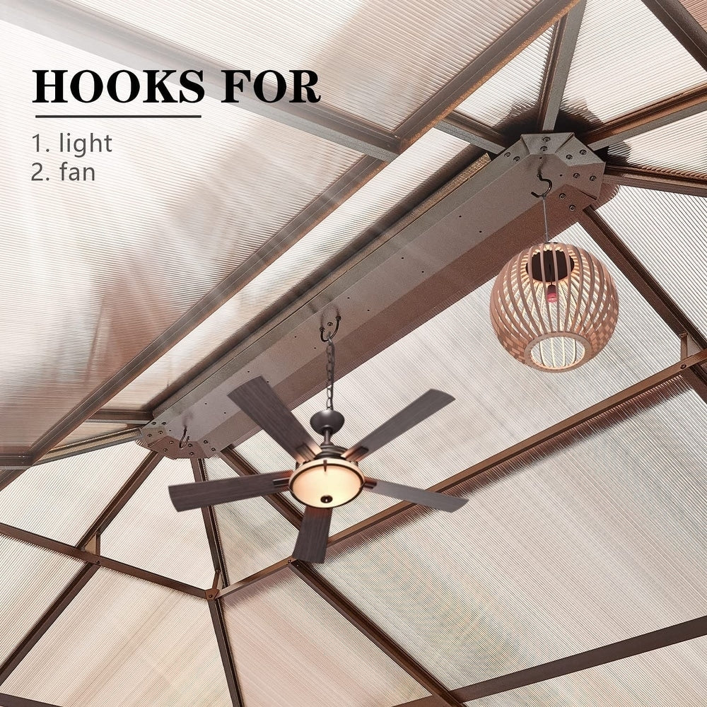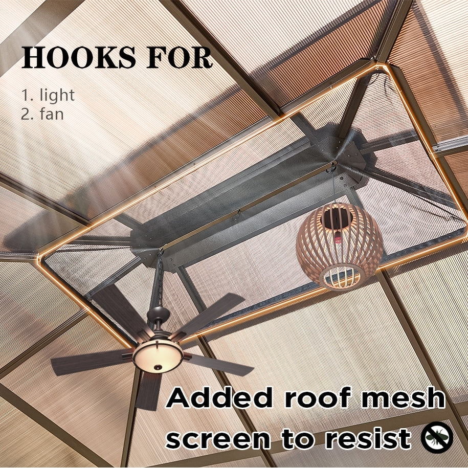 Ce gazebo est doté d'un double toit sophistiqué avec des espaces de ventilation surélevés, améliorant la circulation de l'air pour une expérience plus fraîche. Le système de ventilation intelligent, combiné à des bouches d'aération latérales dissimulées , aspire continuellement l'air frais tout en accélérant la remontée de l'air chaud, vous gardant au frais même pendant les fortes chaleurs estivales. Profitez de l'équilibre parfait entre ombre totale et confort d'une brise naturelle, que vous receviez des invités ou que vous vous détendiez seul, comme sous la canopée d'un arbre.