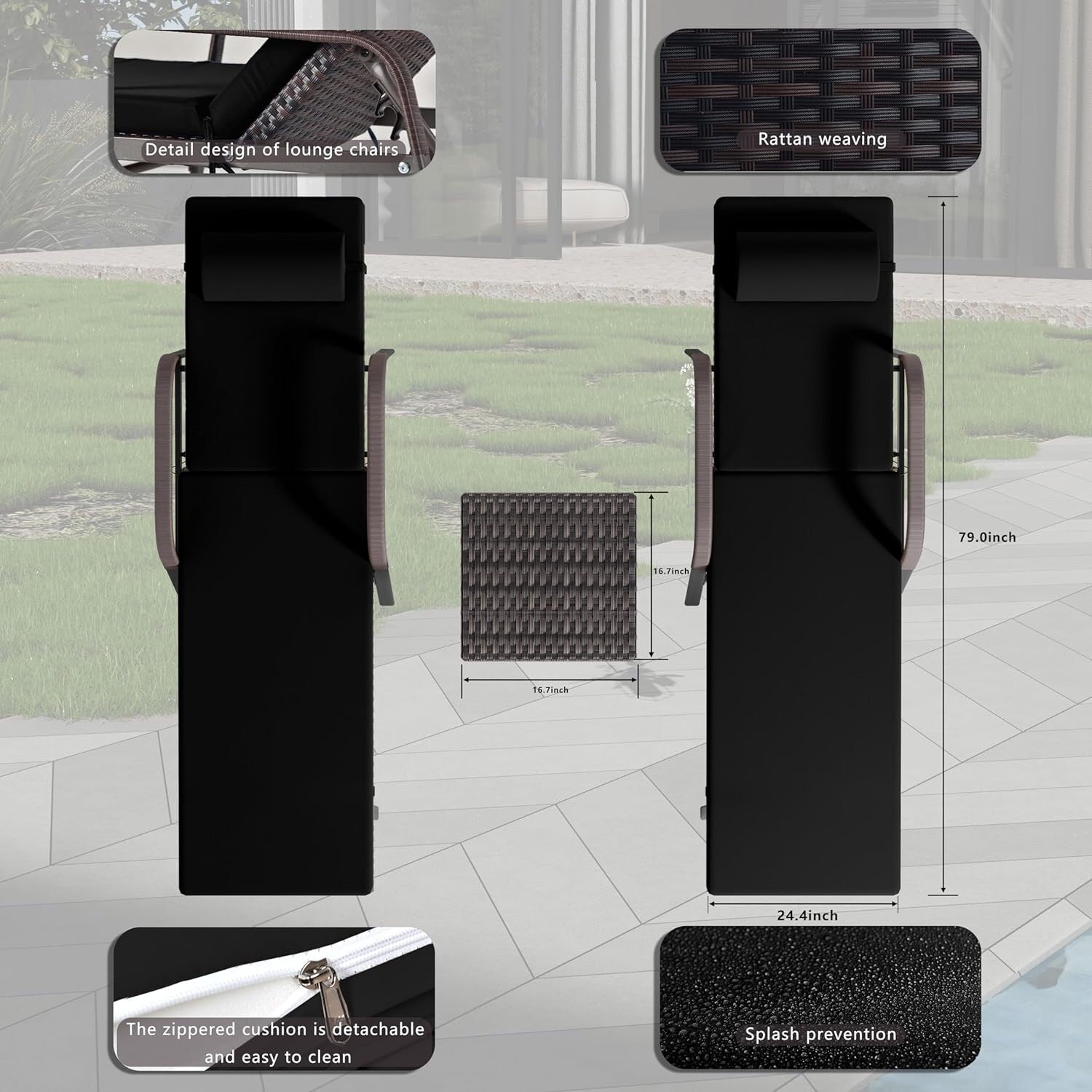 Ensemble de chaises longues d'extérieur 3 pièces Kullavik