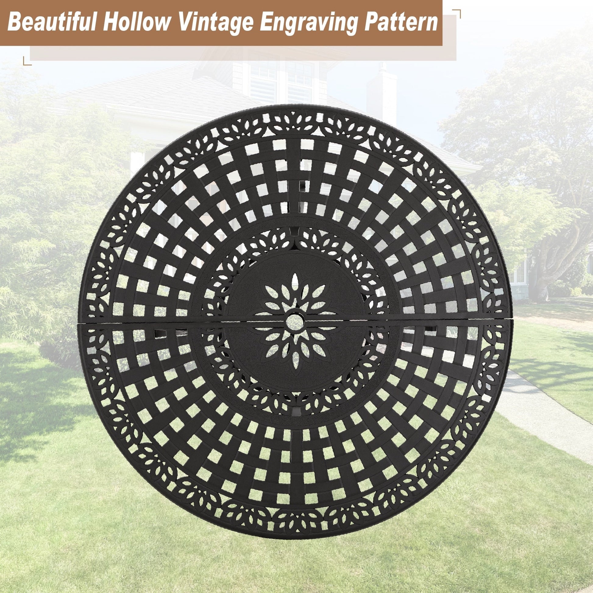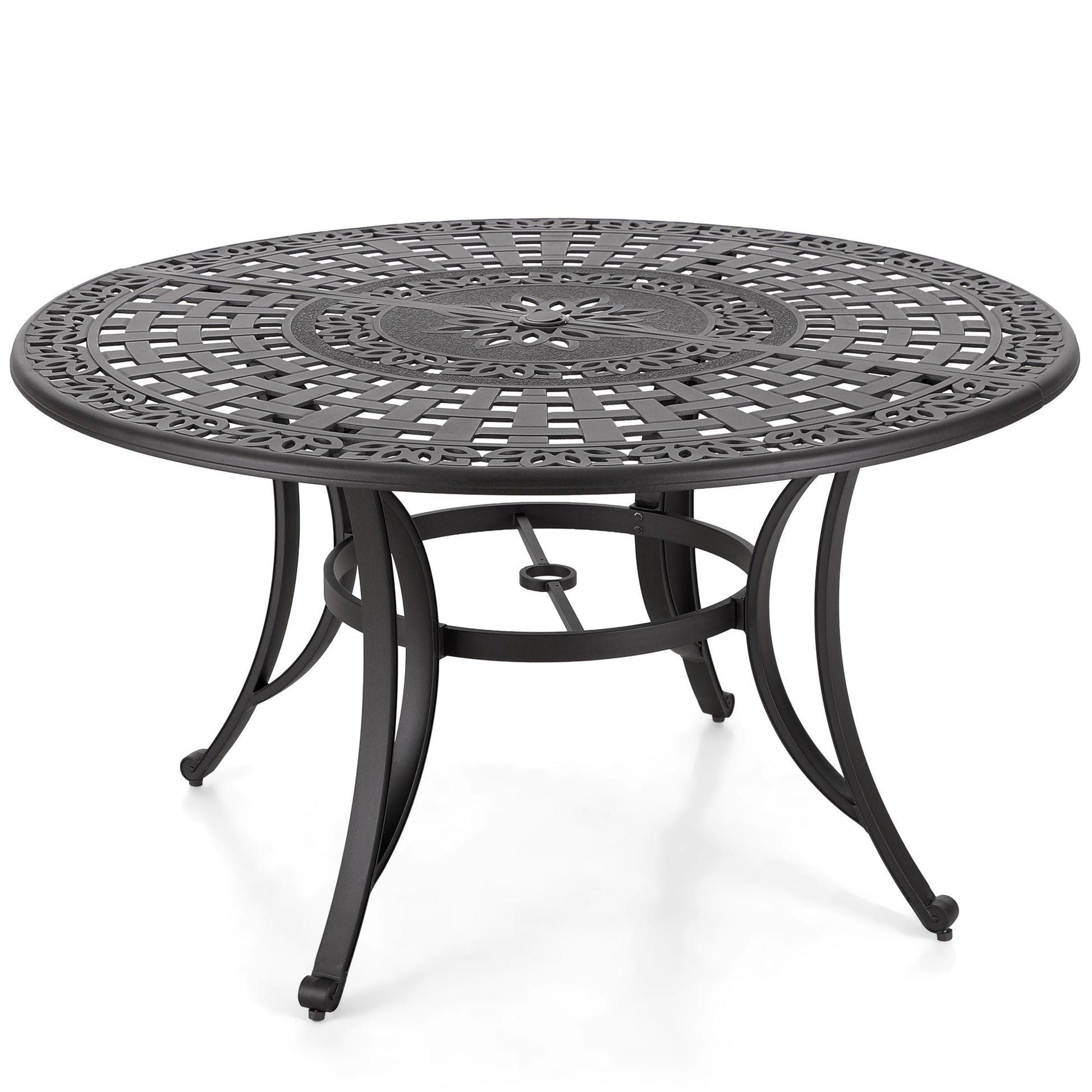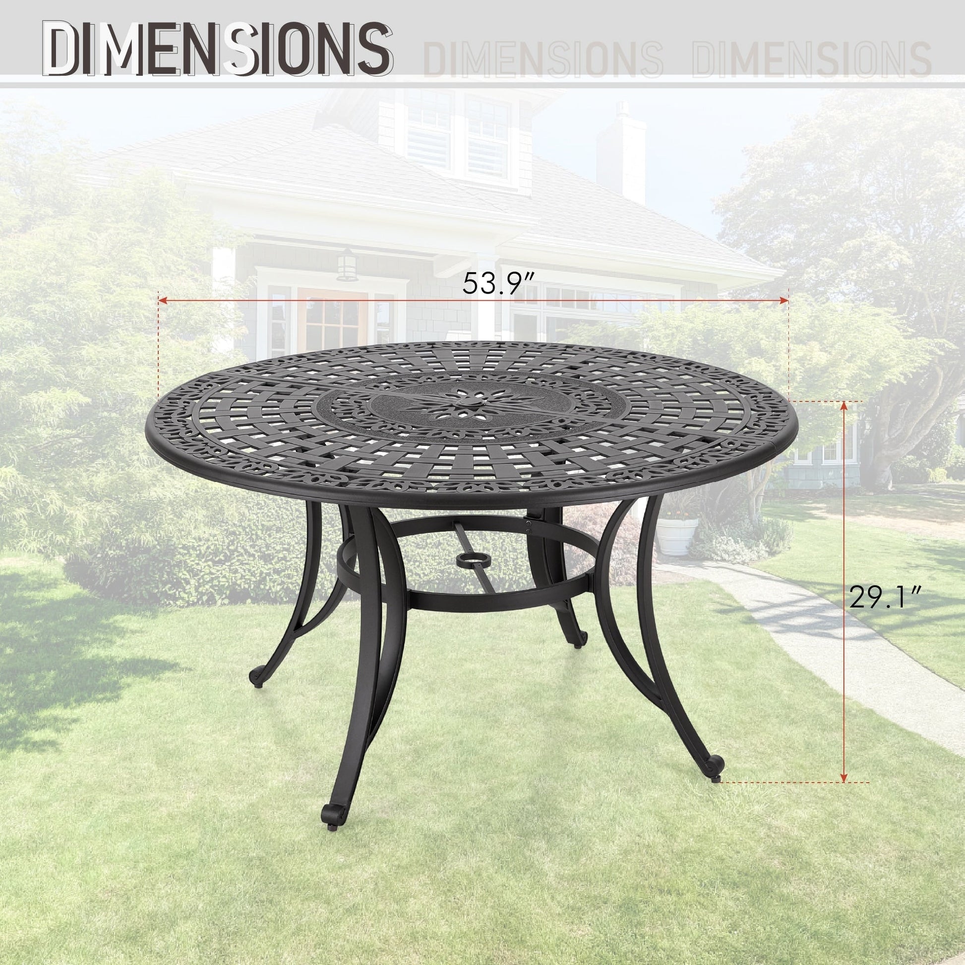 Trou de parasol de 2,17 pouces au milieu de la table, qui peut s'adapter à la plupart des parasols d'extérieur