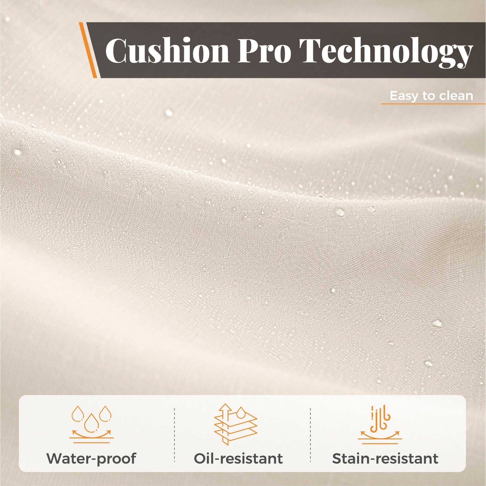 Le coussin beige de 2,7', combiné à des housses résistantes à l'eau, aux taches et aux couleurs durables, offre une sensation plus confortable.
