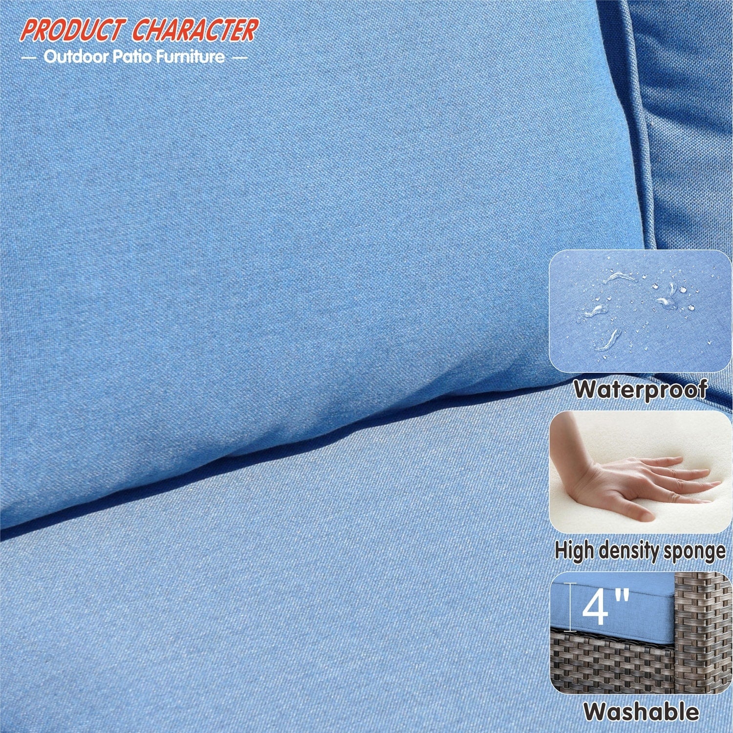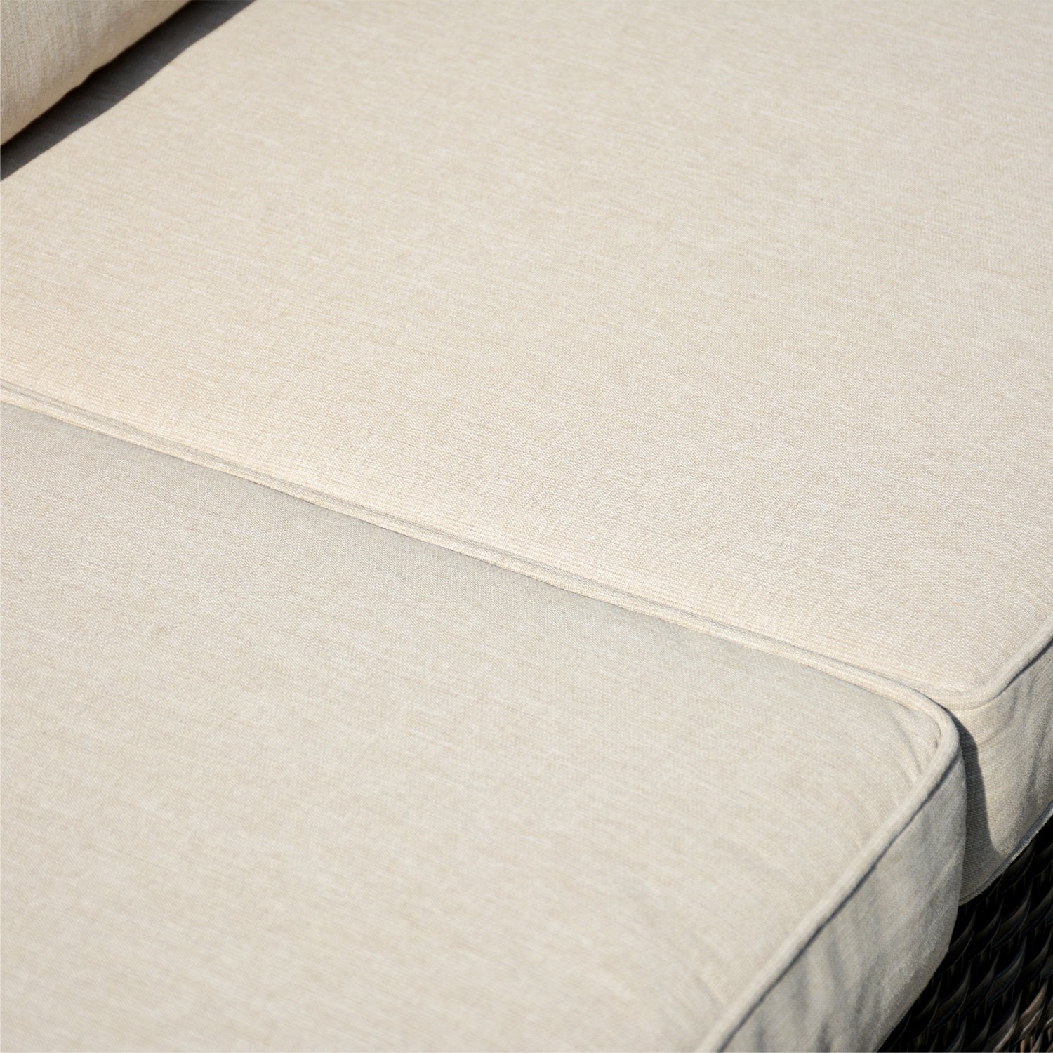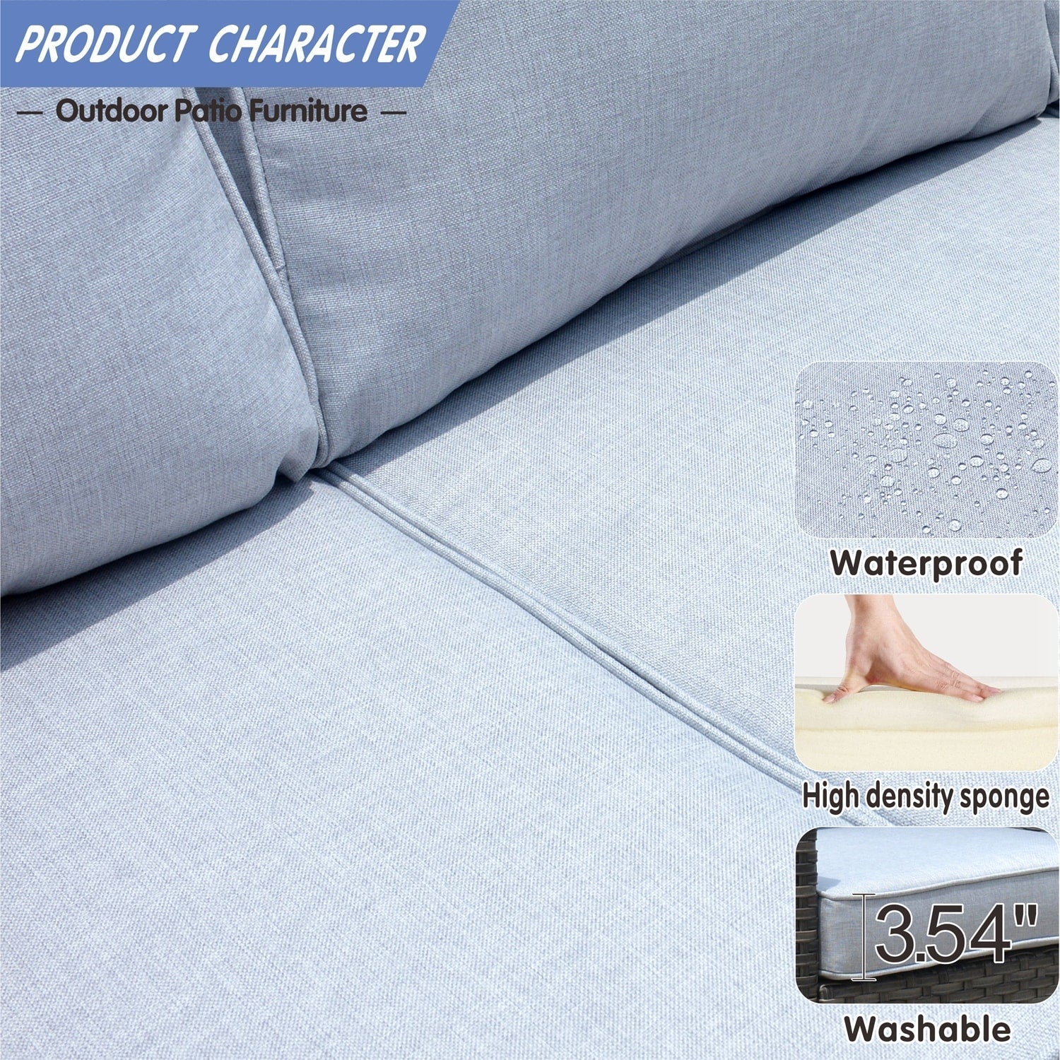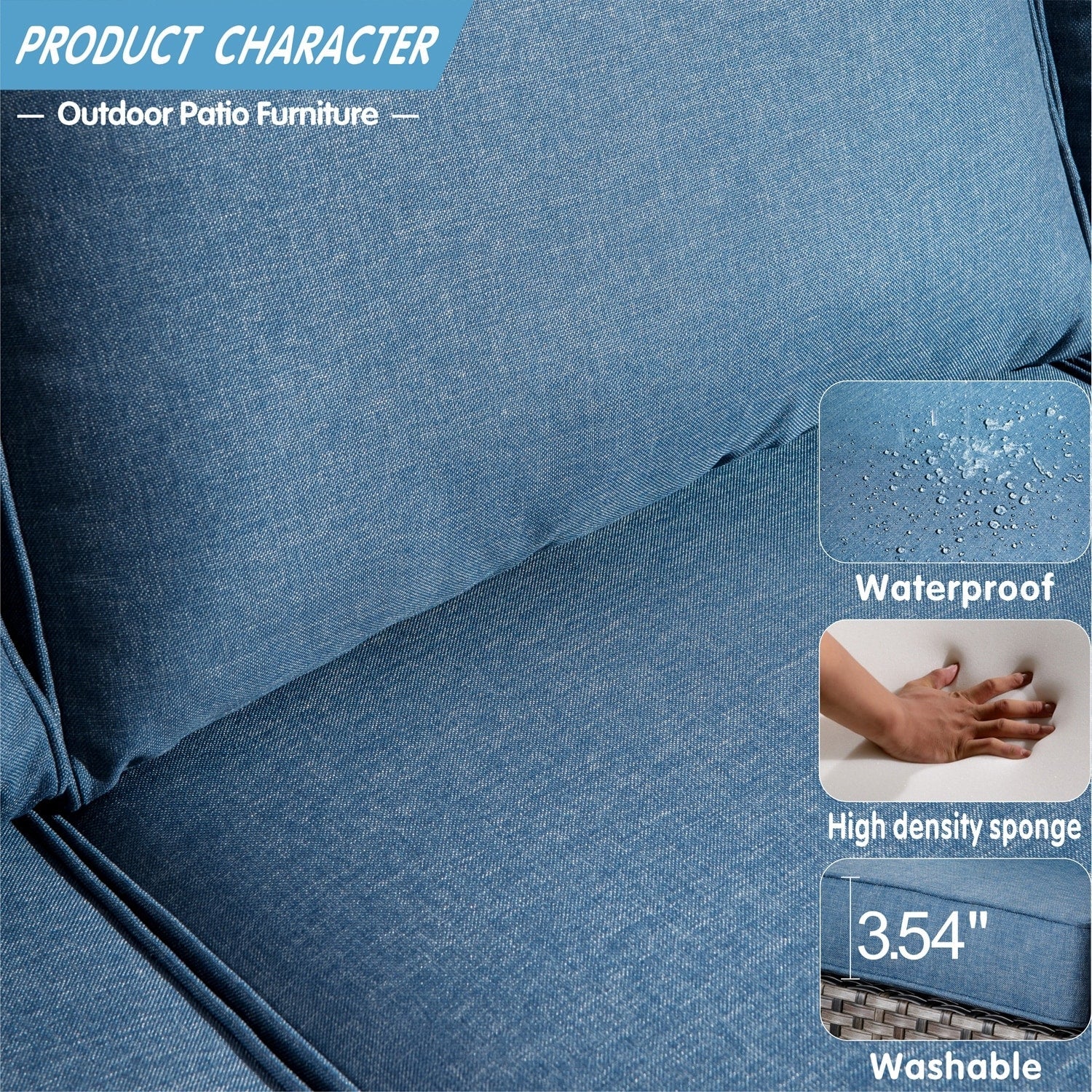 Résistant à l'eau et aux intempéries : Les coussins et le mobilier sont conçus pour résister à l'eau, ce qui les rend parfaits pour résister à une pluie légère ou à la neige. Bien que cet ensemble résiste facilement à la plupart des conditions météorologiques, il est préférable de le protéger des intempéries extrêmes pour une meilleure longévité.