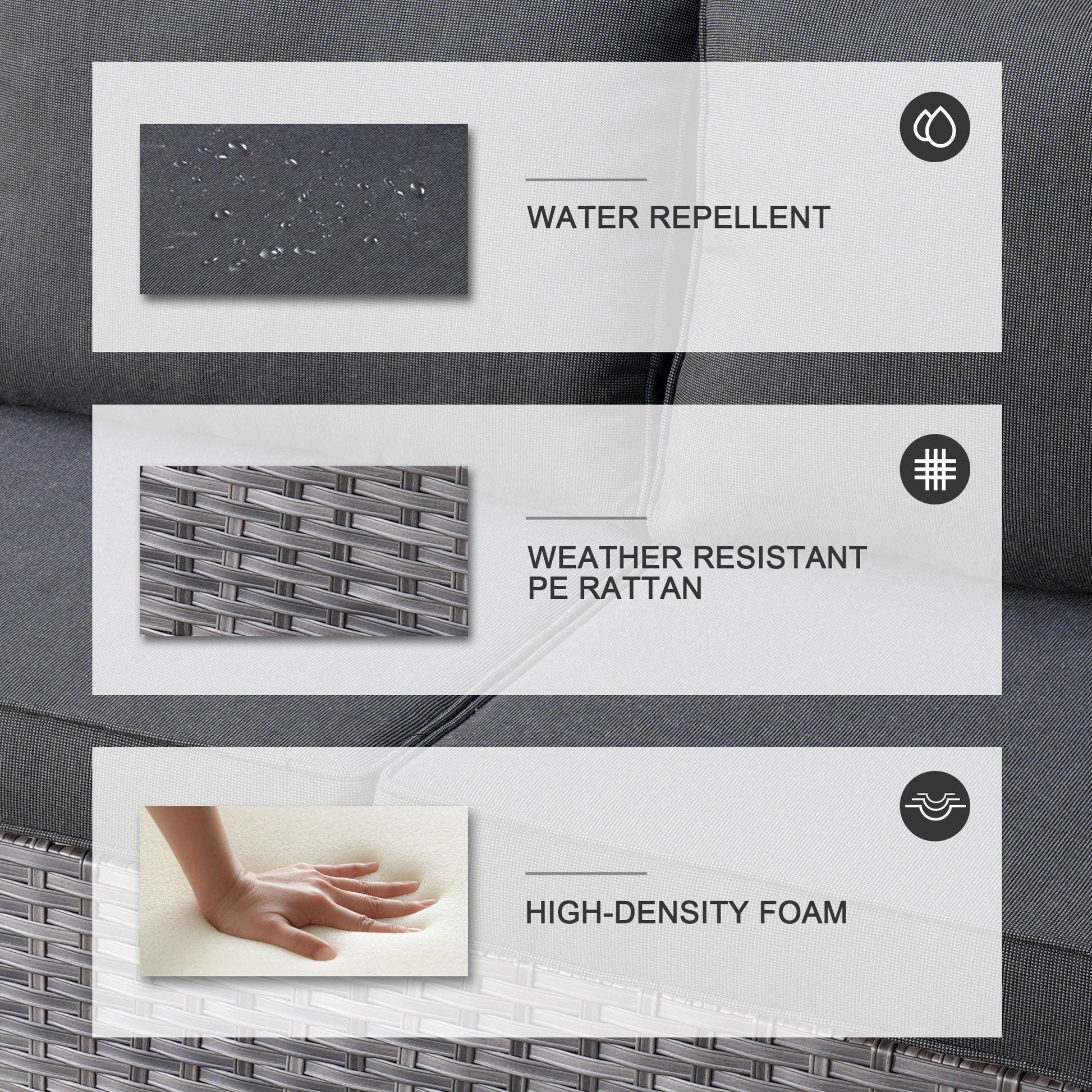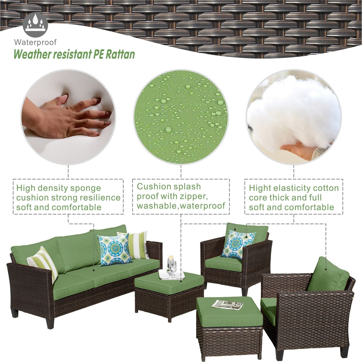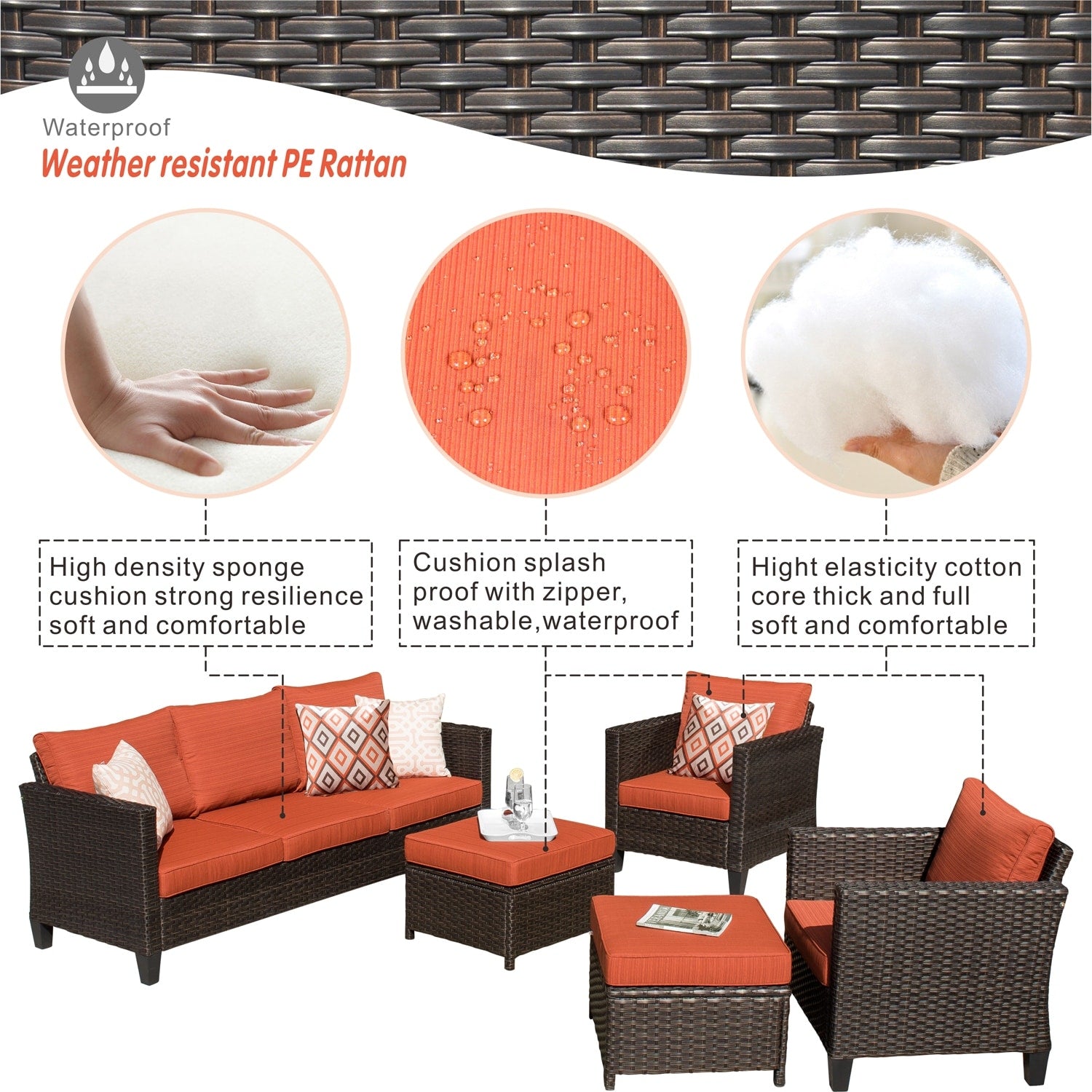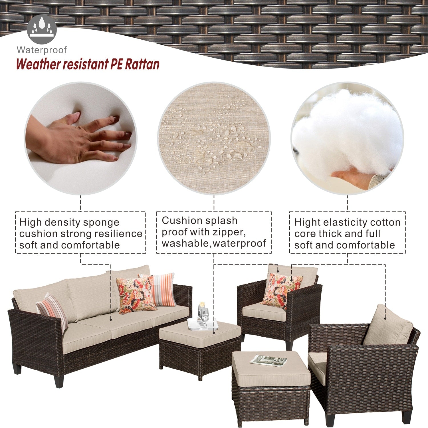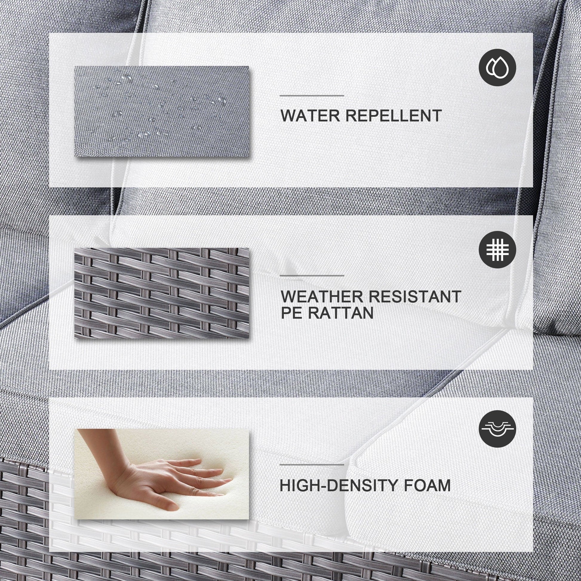 Résistant à l'eau et aux intempéries : Les coussins et le mobilier sont conçus pour résister à l'eau, ce qui les rend parfaits pour résister à une pluie légère ou à la neige. Bien que cet ensemble résiste facilement à la plupart des conditions météorologiques, il est préférable de le protéger des intempéries extrêmes pour une meilleure longévité.